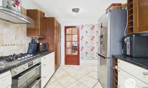 Carpet flooring, ceiling coving, cupboards housing meters, dado rail, uPVC front door, loft access, panel radiator.