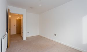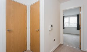 This apartment offers fitted storage just off the hallway, before leading to the open plan kitchen/living area, which is flooded with natural light from the large windows. The living area also boasts access to the balcony.