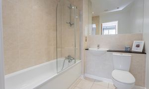 The rest of the property offers a master bedroom benefitting from a built in wardrobe, as well as a spacious bathroom with a shower over top of the bath, and second double bedroom.