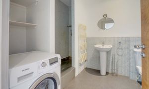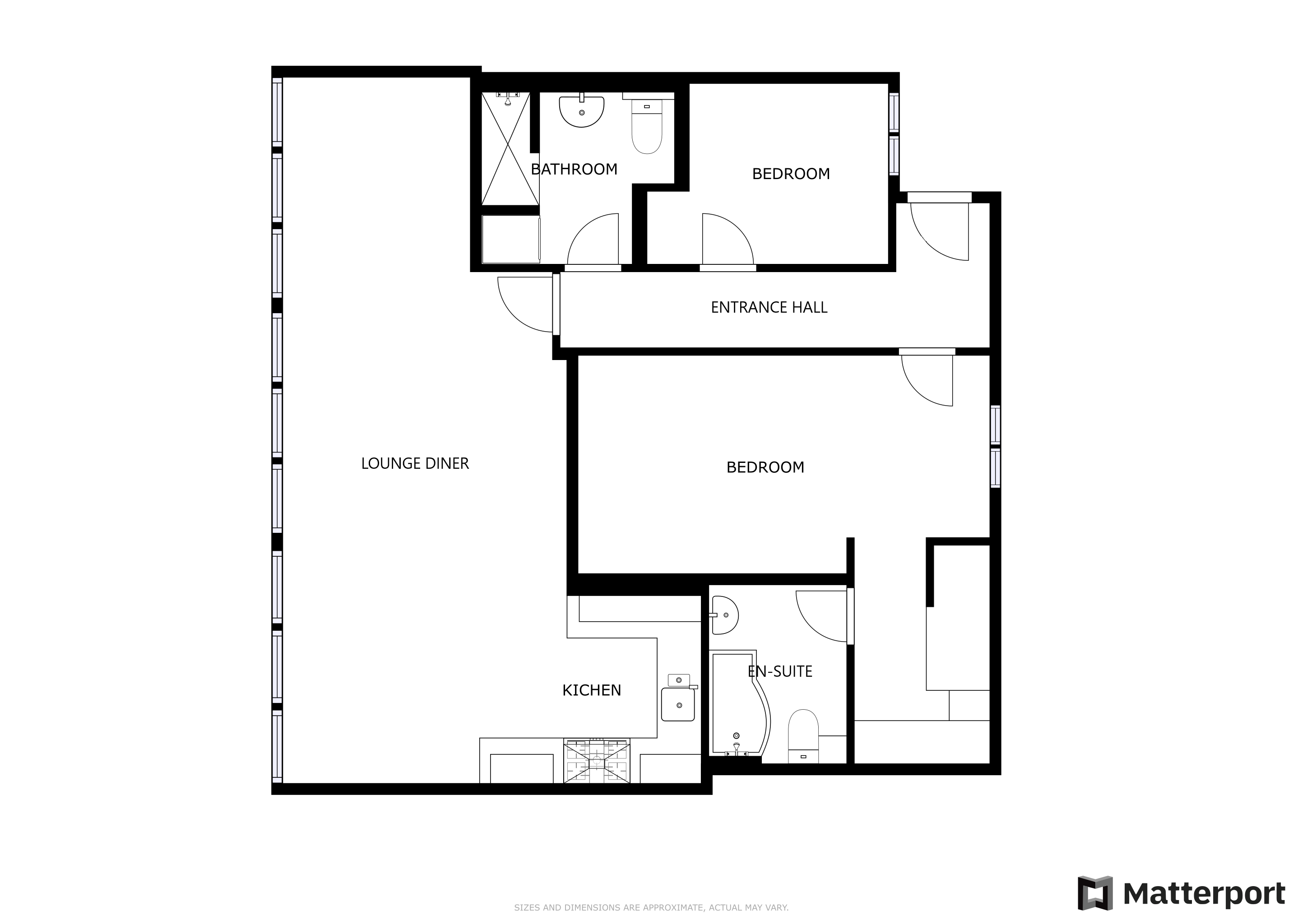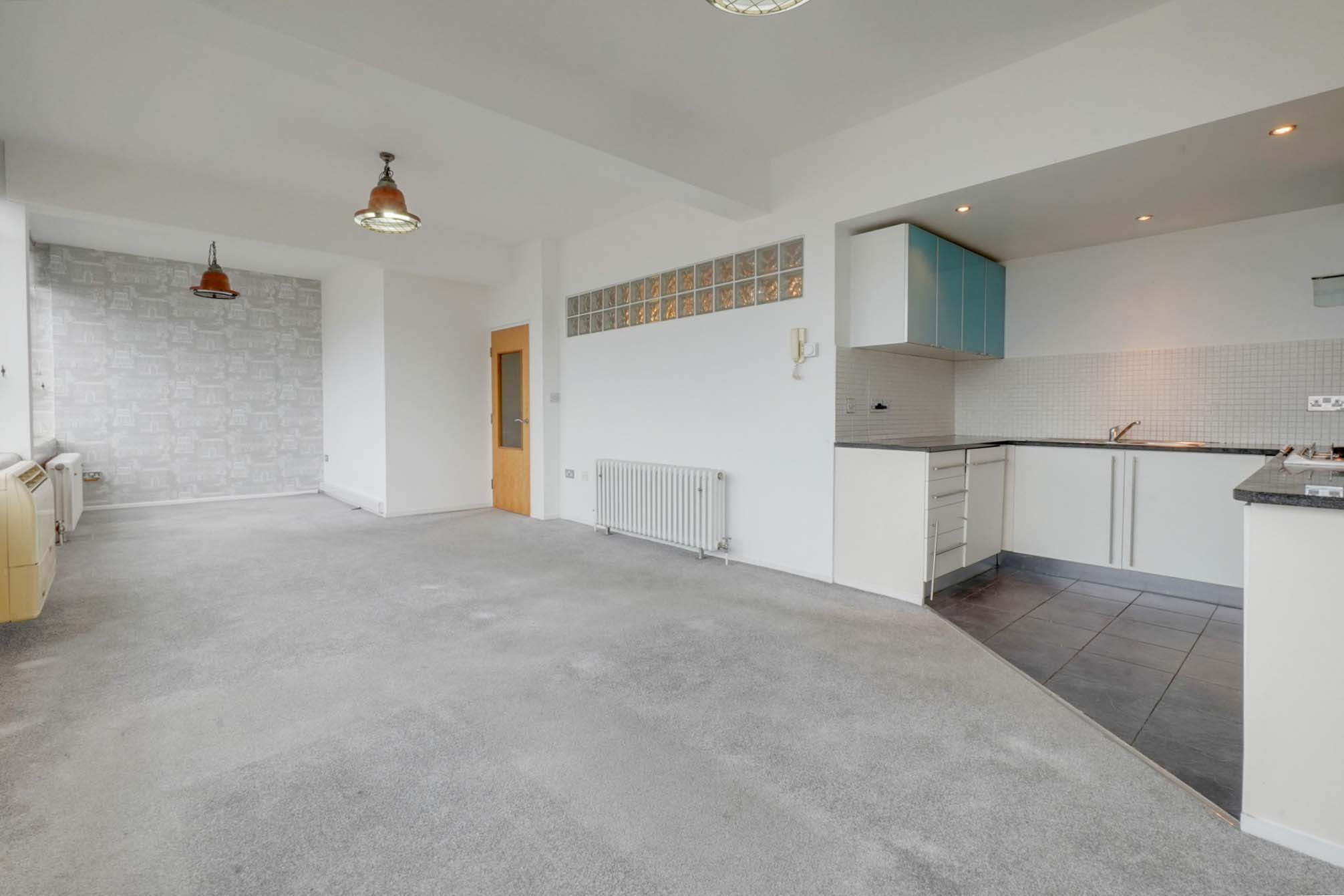 The accommodation includes two bedrooms and two bathrooms, offering flexibility for a range of occupants. A single reception room is arranged within an open-plan layout, providing a sociable living space that suits contemporary lifestyles.