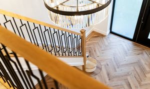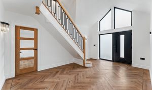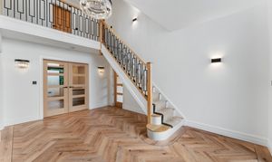 - Impressive entrance hall with herringbone flooring and contemporary feature lighting