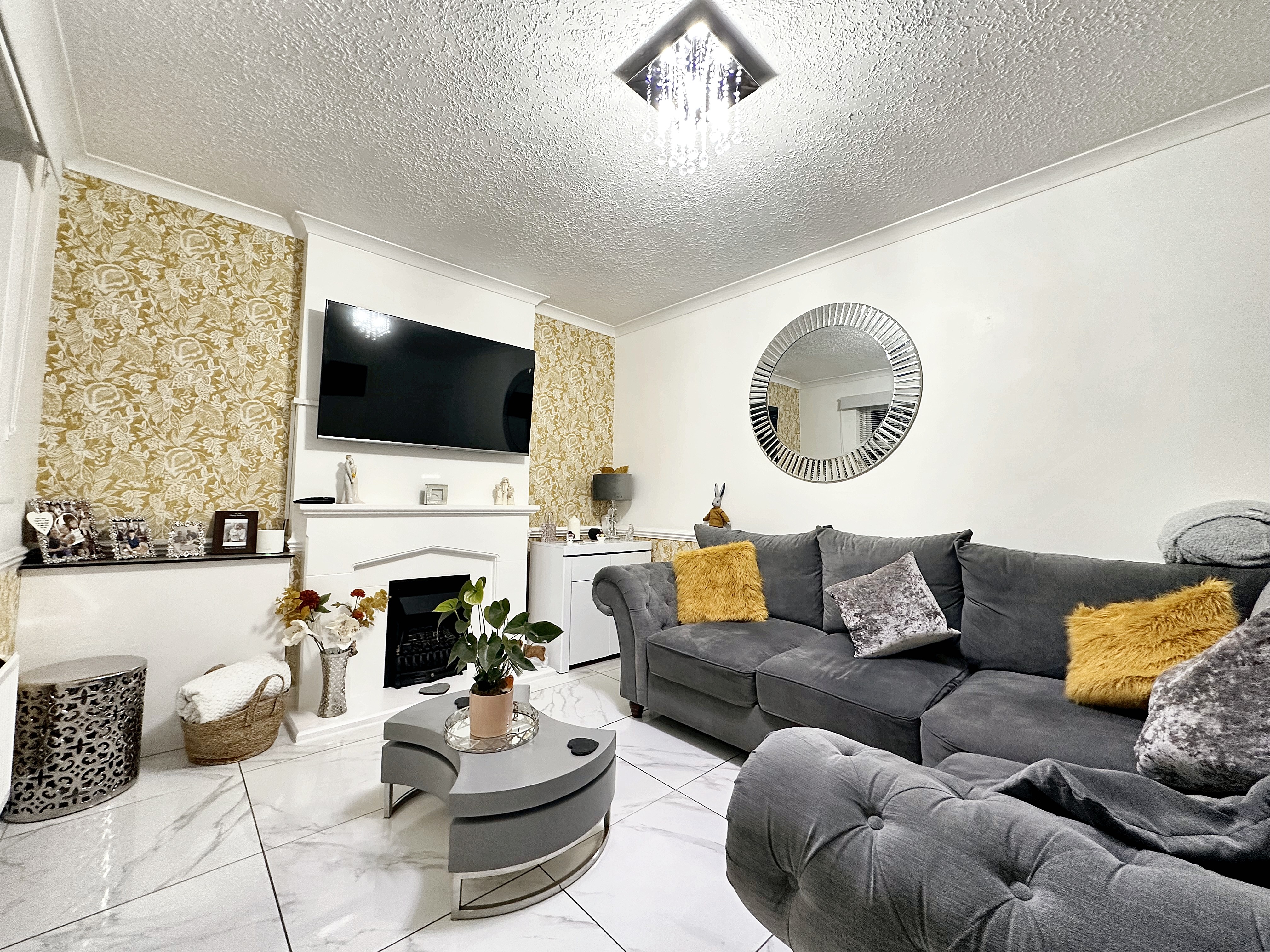 - Classy styled living room with three double glazed UPVC windows, allowing for plenty of natural light