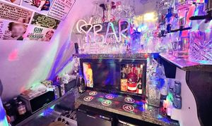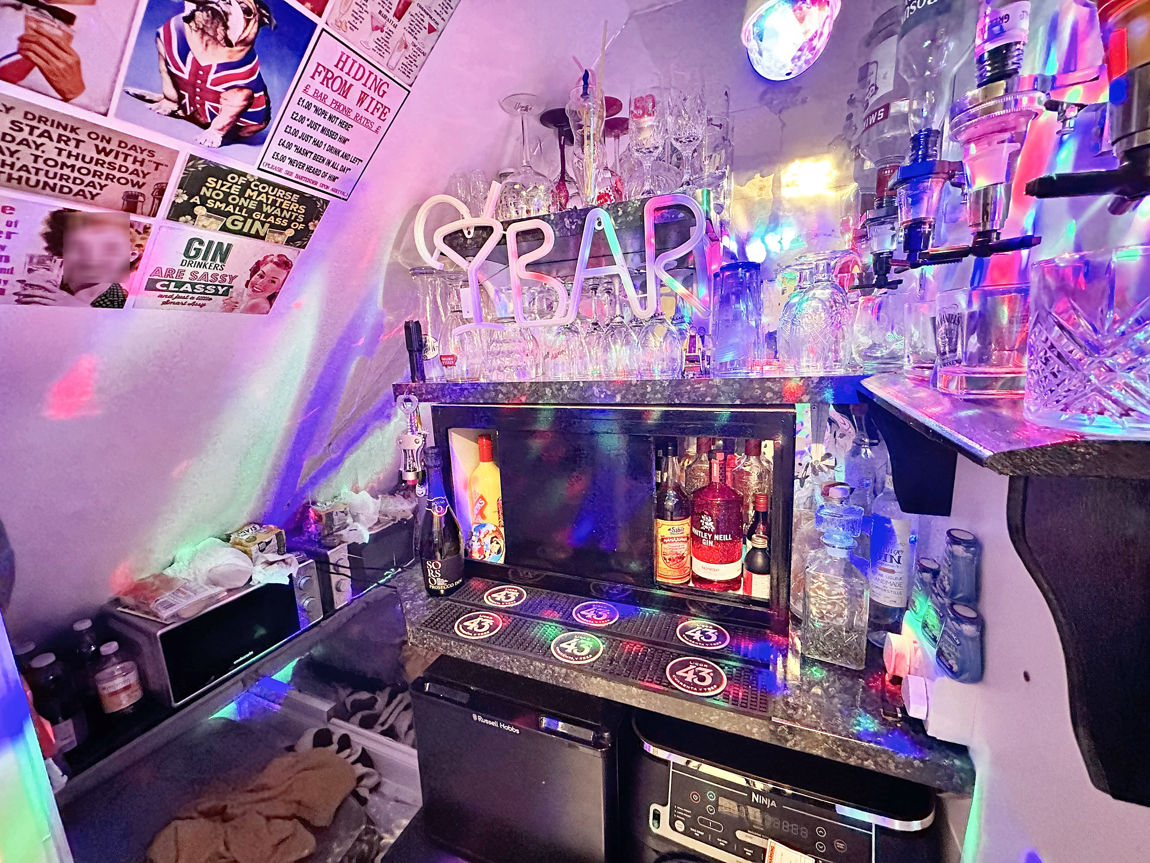 - Bar area with featured aluminous lighting, positioned under the stairs