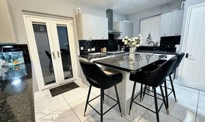 - Stylish, snazzy fitted kitchen with a breakfast island and floor levelled under lighting