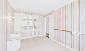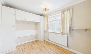 Window to front, built-in wardrobes and storage, with radiator, and wood effect flooring.