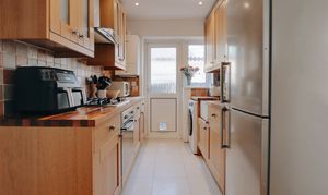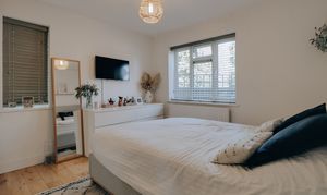Step inside to a bright and welcoming hallway - almost open-plan in feel - that flows seamlessly towards the kitchen. This thoughtfully laid-out galley space comes fully equipped with integrated appliances and smart cabinetry, and opens directly onto the private rear garden, offering effortless indoor-outdoor living. At the front of the home, the west-facing reception room is bathed in afternoon sun, making it the perfect setting for relaxed evenings or entertaining guests. The main bedroom is notably generous, with oversized windows flooding the space with natural light and allowing plenty of room for freestanding furnishings. A second bedroom provides flexibility - ideal as a guest room, nursery or dedicated home office - while the contemporary family bathroom is finished to a high standard, featuring sleek fixtures and full-height tiling.
