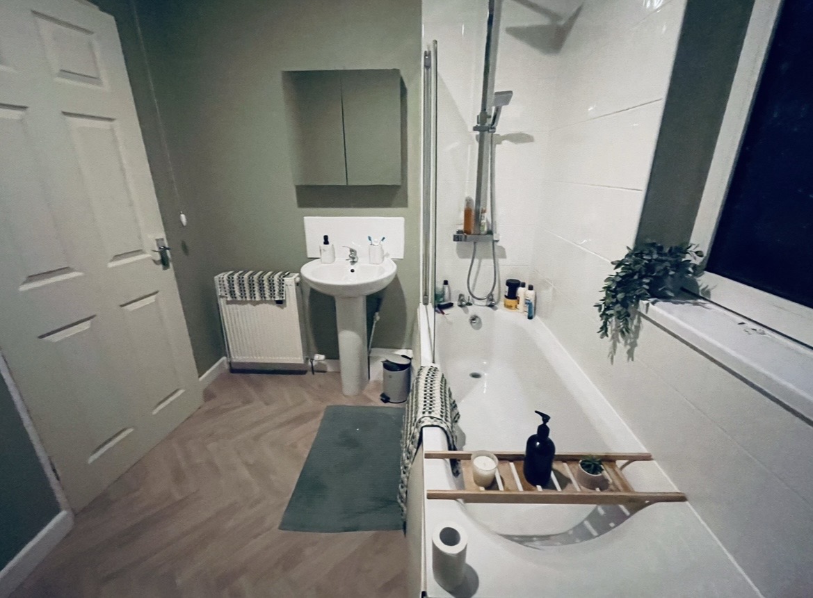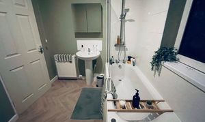 On the first floor, there are two double bedrooms, the main with built in storage cupboard. There is a modern fitted bathroom with shower over bath.