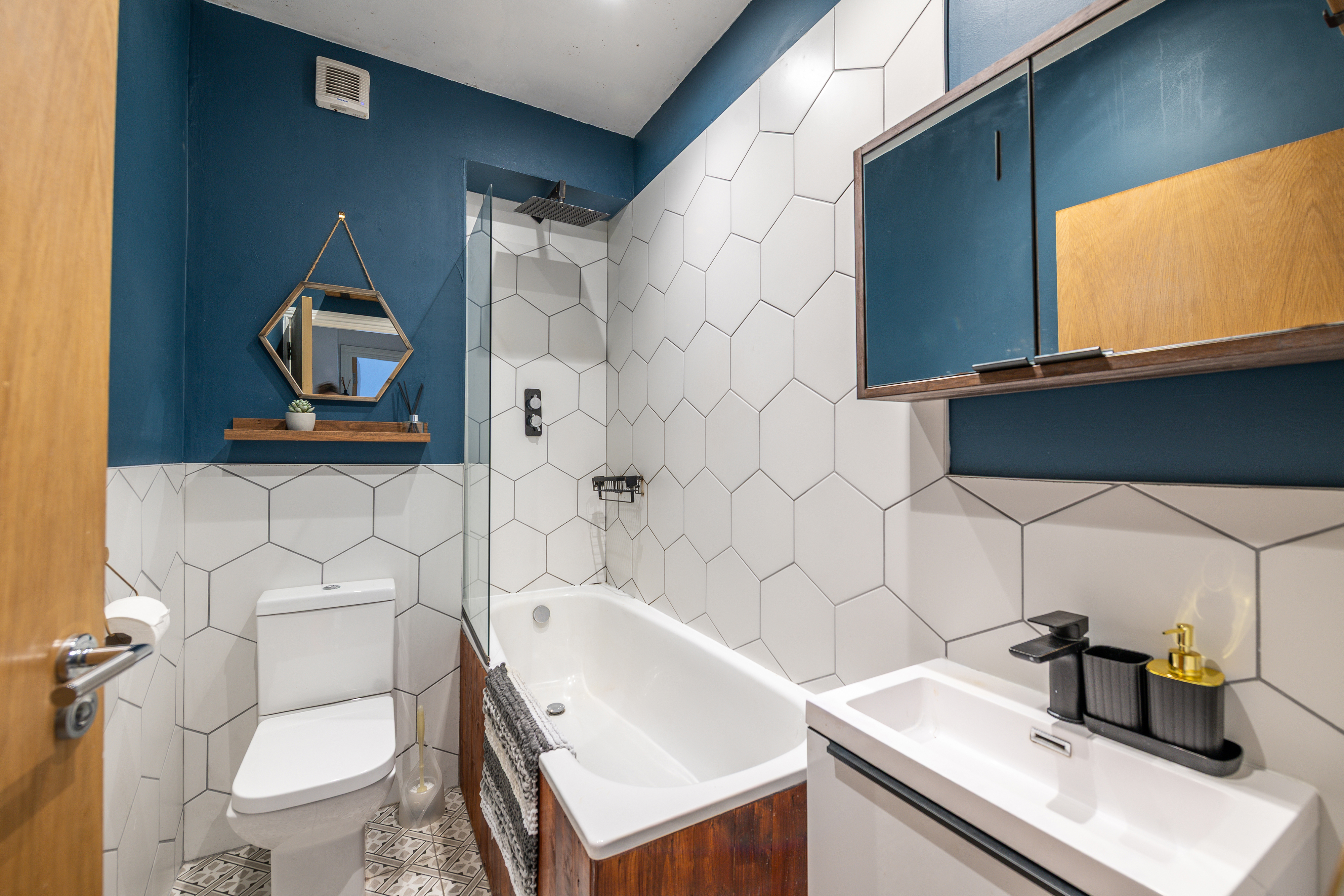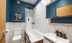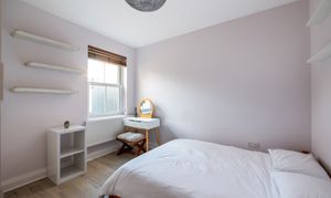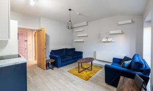 The double bedroom is generously sized and complemented by ample storage options. A contemporary bathroom, finished to a high standard, adds to the appeal. The property’s layout maximises natural light, creating a bright and welcoming home.