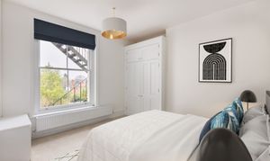 There are white shaker-style units in the kitchen with an integrated electric oven and hob and space for a freestanding fridge and washing machine. This apartment has two bedrooms, with the smaller being a generous single room which could alternatively be used as an excellent study. The bathroom is fitted with a modern white suite with shower over the bath, heated towel rail and useful storage beneath the basin. The main bedroom is a double room with newly fitted timber double glazed sash window and a built-in double wardrobe. The apartment has been recently redecorated throughout, with new carpets in neutral tones and is ready to move straight into and enjoy.