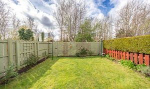 This charming rear garden perfectly balances greenery with practicality. A well maintained lawn is complemented by a paved area, creating versatile spaces for outdoor dining, relaxing, and entertaining, while planted borders add colour and character. Fully enclosed for privacy and security, the garden also features a gate leading to the rear woodland area, as well as direct access to the back of the garage. A clothesline and outdoor tap provide added convenience. Whether enjoying a quiet moment or hosting guests, this tranquil outdoor space is a true extension of the home.