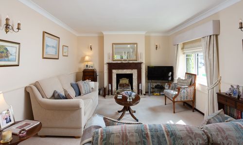 In the open-plan living kitchen/family room, a fully fitted kitchen in Aldana Stone colour offers a modern and functional design. The quartz work surface and large island provide ample workspace and a central hub, while the double pantry unit and integrated bin help keep the space organised and clutter-free. The kitchen is equipped with high-end features such as a Franke 1.5 sink, extractor hood with a quartz splashback, and tiled flooring. Appliances include a Franke boiling water tap for instant hot water convenience, a versatile range cooker, and high-quality Bosch built-in microwave, fridge, freezer, and dishwasher.