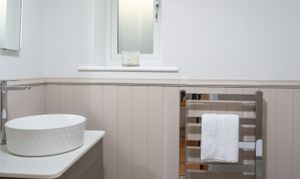 The bathroom and cloakroom are equipped with heated towel rails for added comfort and luxury, high-quality sanitary ware with chrome fittings, sleek shower doors, and high-quality tiling for a stylish and easy-to-maintain finish.
