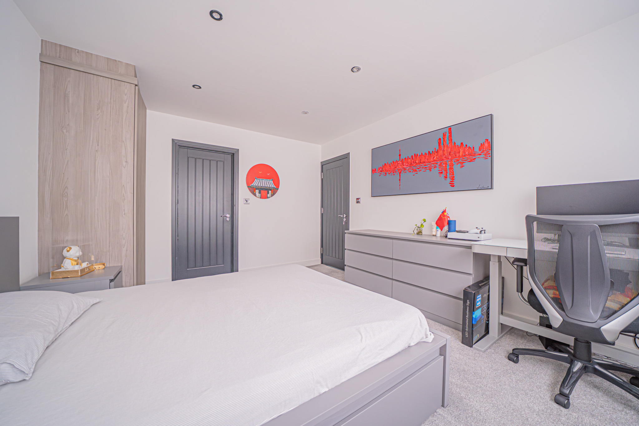 The expansive living room provides ample space for relaxation and entertainment, while a versatile home office/gym offers flexibility for modern living. A downstairs shower room adds further convenience to this impeccable abode and allows the opportunity for single level living for multi-generational families.