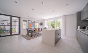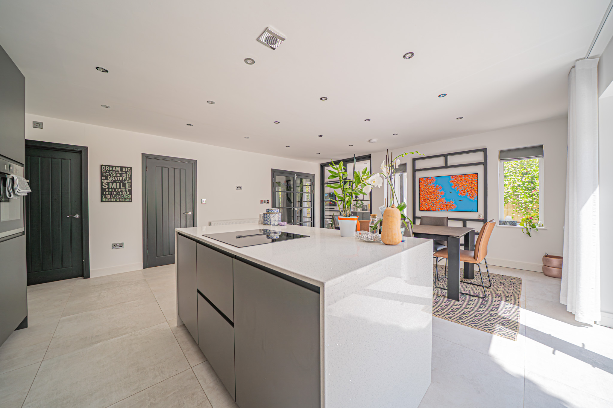 Upon entering the property, you are greeted by a striking entrance hallway that elegantly connects all ground floor living spaces. The heart of this home is a magnificent open-plan kitchen/diner flooded with natural light, complete with double doors leading out to the rear garden. Adjacent to the kitchen lies a spacious pantry and a convenient utility room, offering both practicality and style.