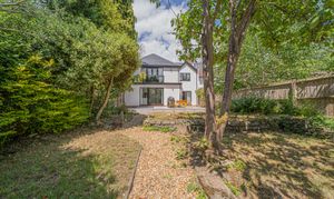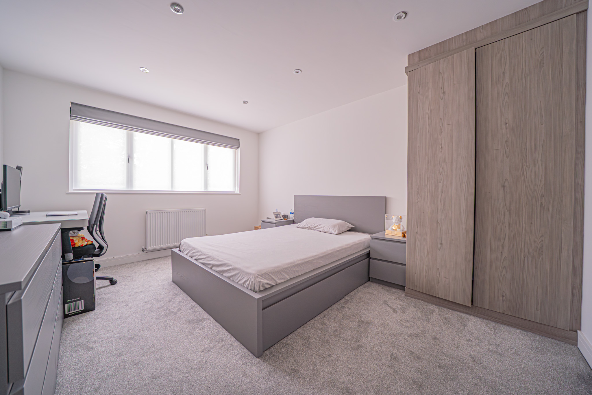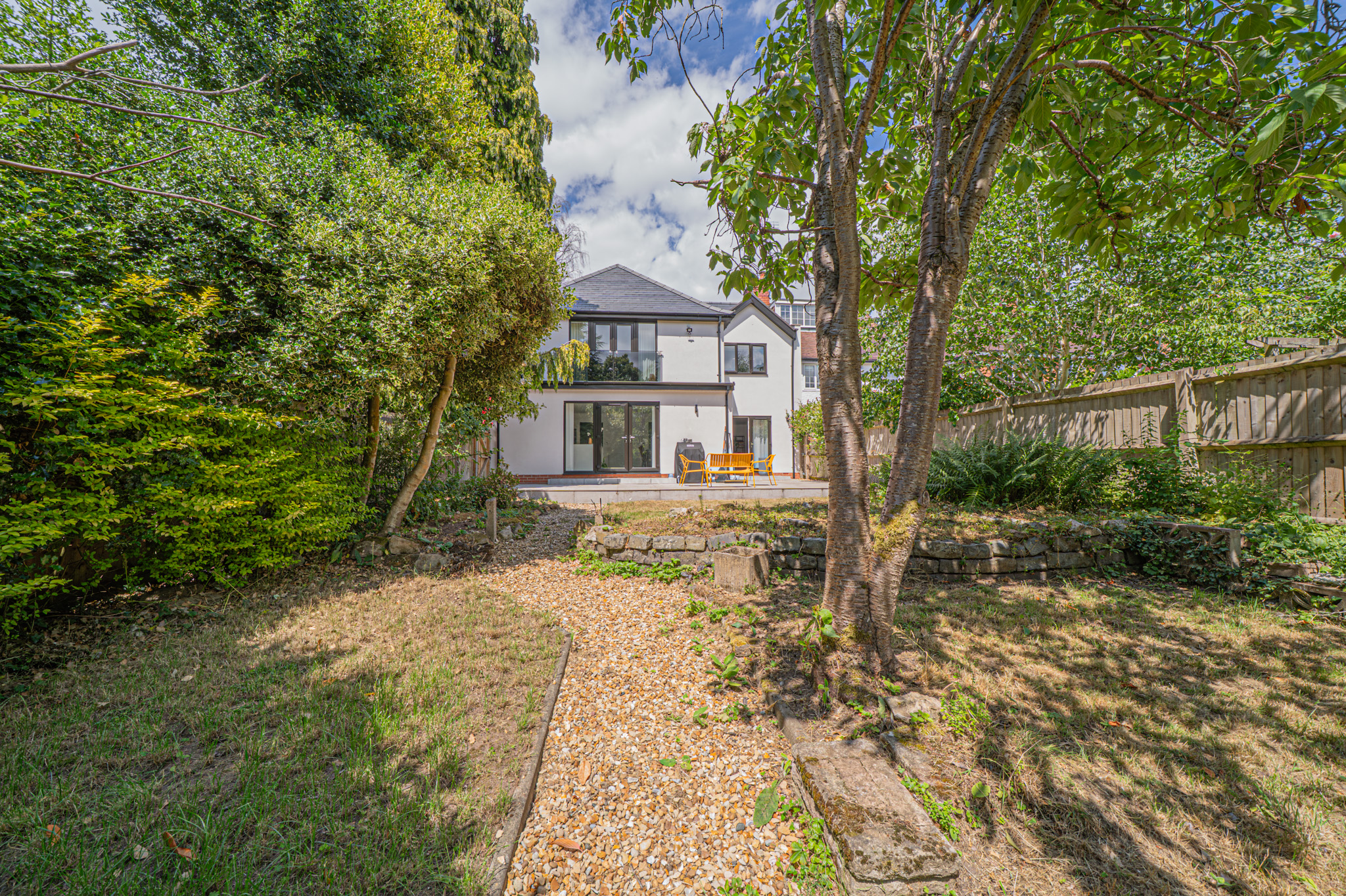 Outside, a delightful rear garden offers a private retreat for outdoor enjoyment. To the front of the property, an expansive driveway provides parking for multiple vehicles, enhancing the practicality of this exceptional home.
