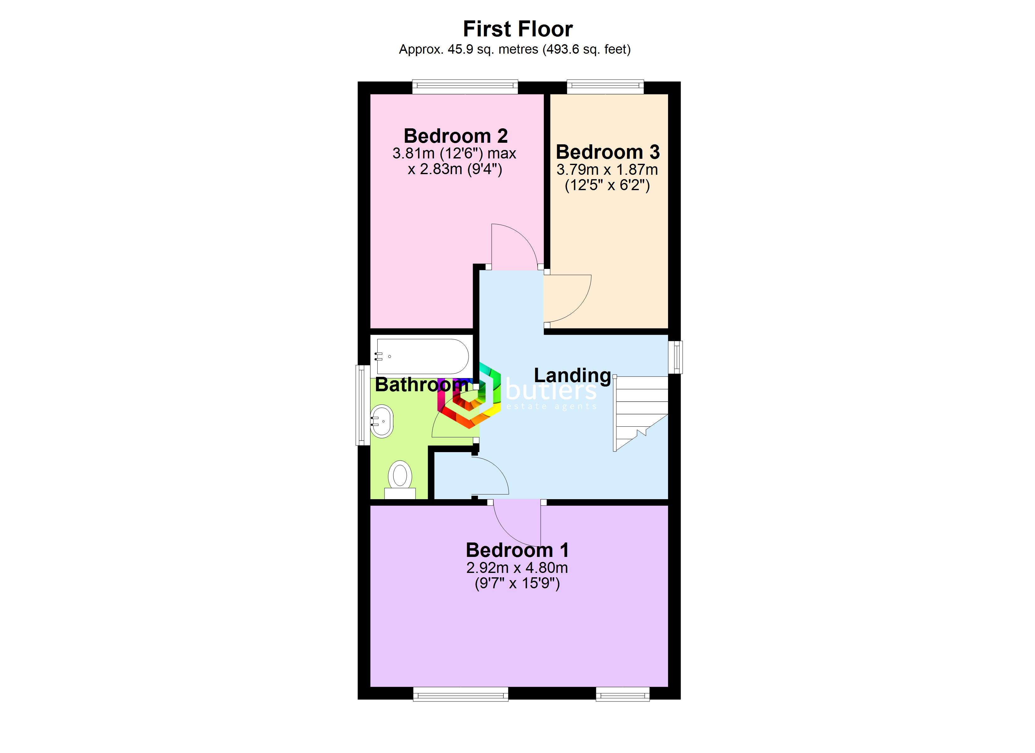 Located to the front of the house is the main bedroom with twin windows and full height fitted wardrobes with mirrored sliding doors. Fabulous sized room to unwind on an evening.