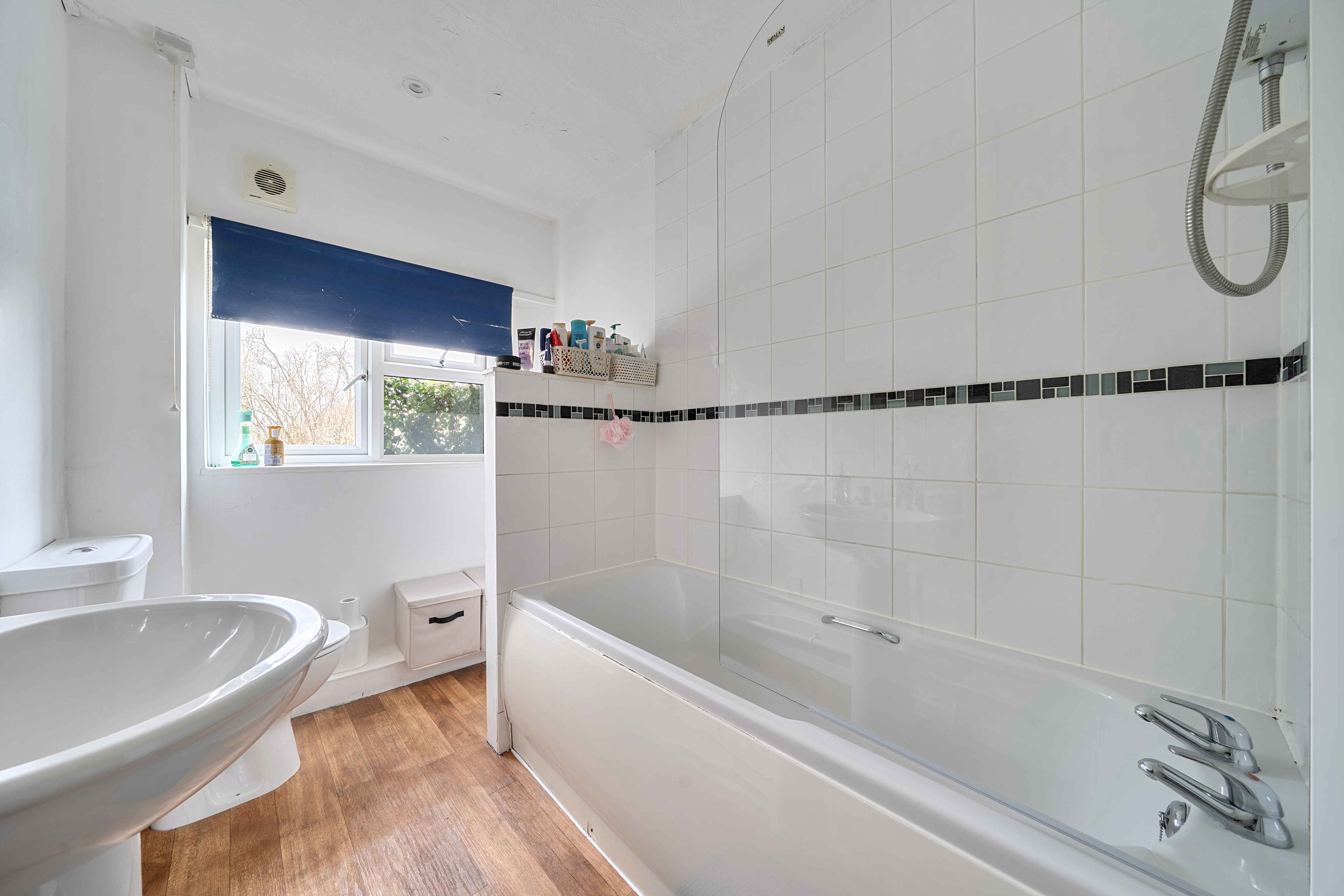 Upstairs, there are two genuine double bedrooms, both accessed from the landing. The main bedroom is particularly generous in size, while the second bedroom leads through to the bathroom. It’s a layout that won’t suit everyone, but for the right buyer it works perfectly well and is easy to live with.