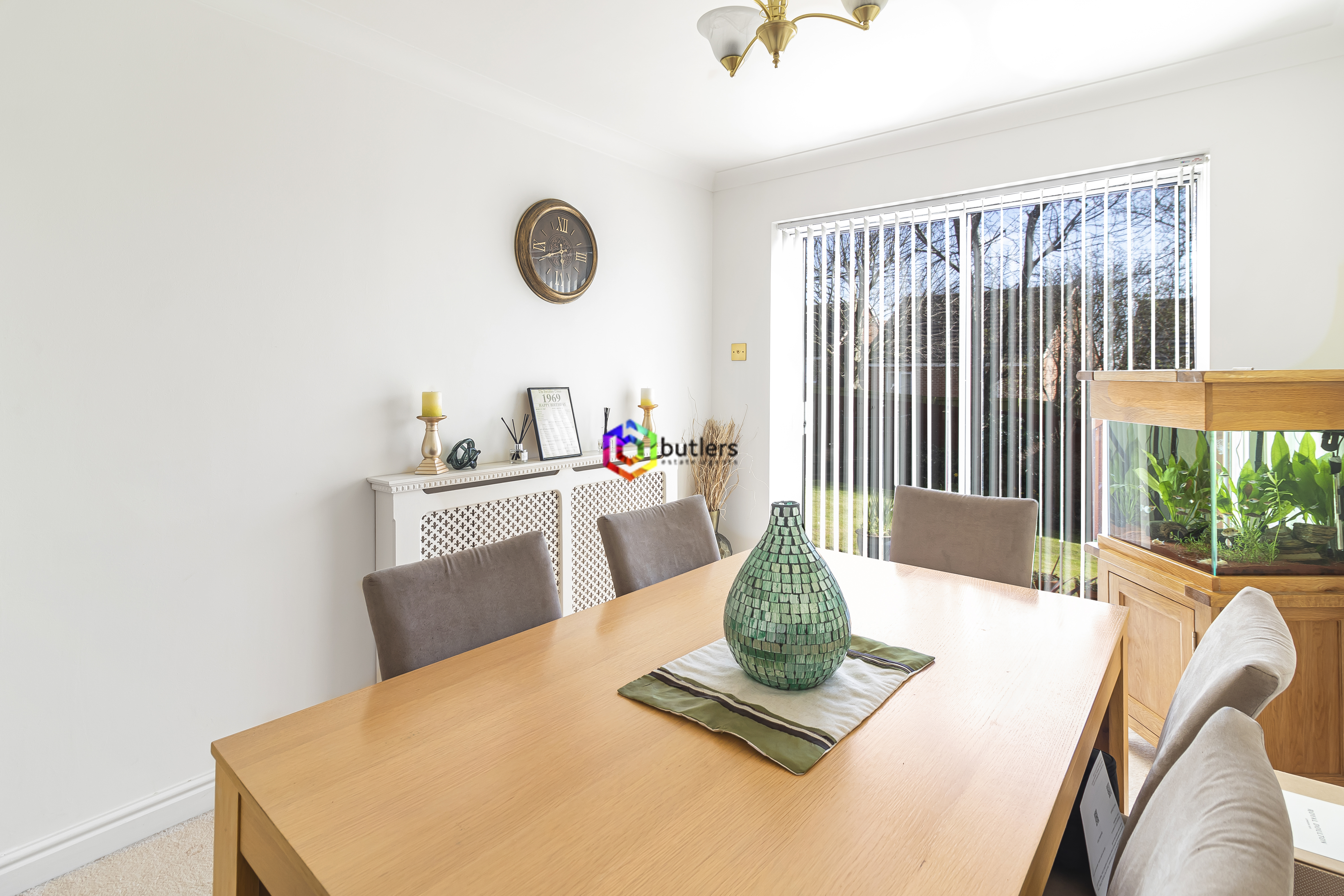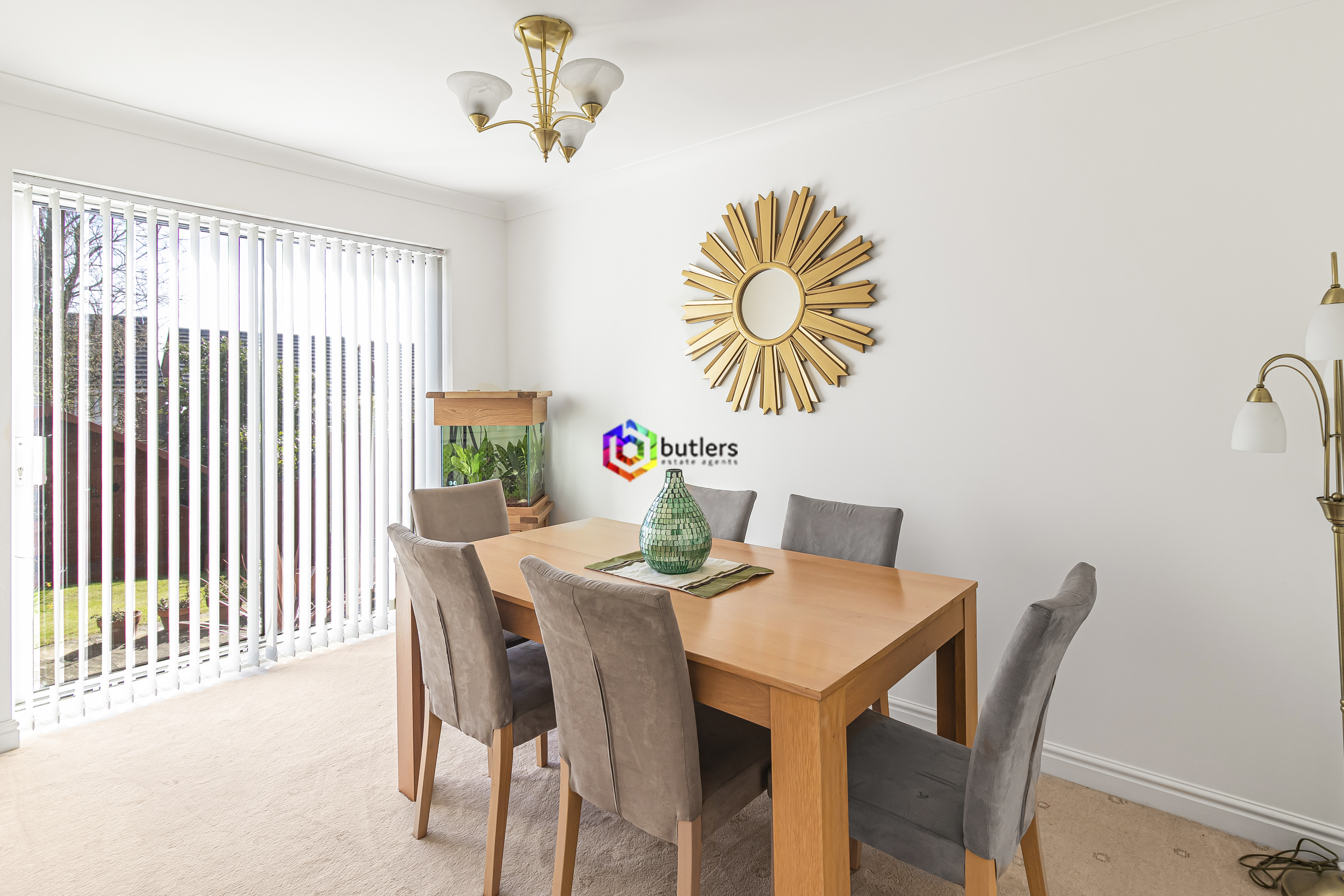 A separate dining room to the rear with a patio sliding door providing access to the rear garden patio areas.