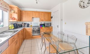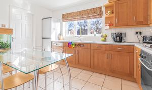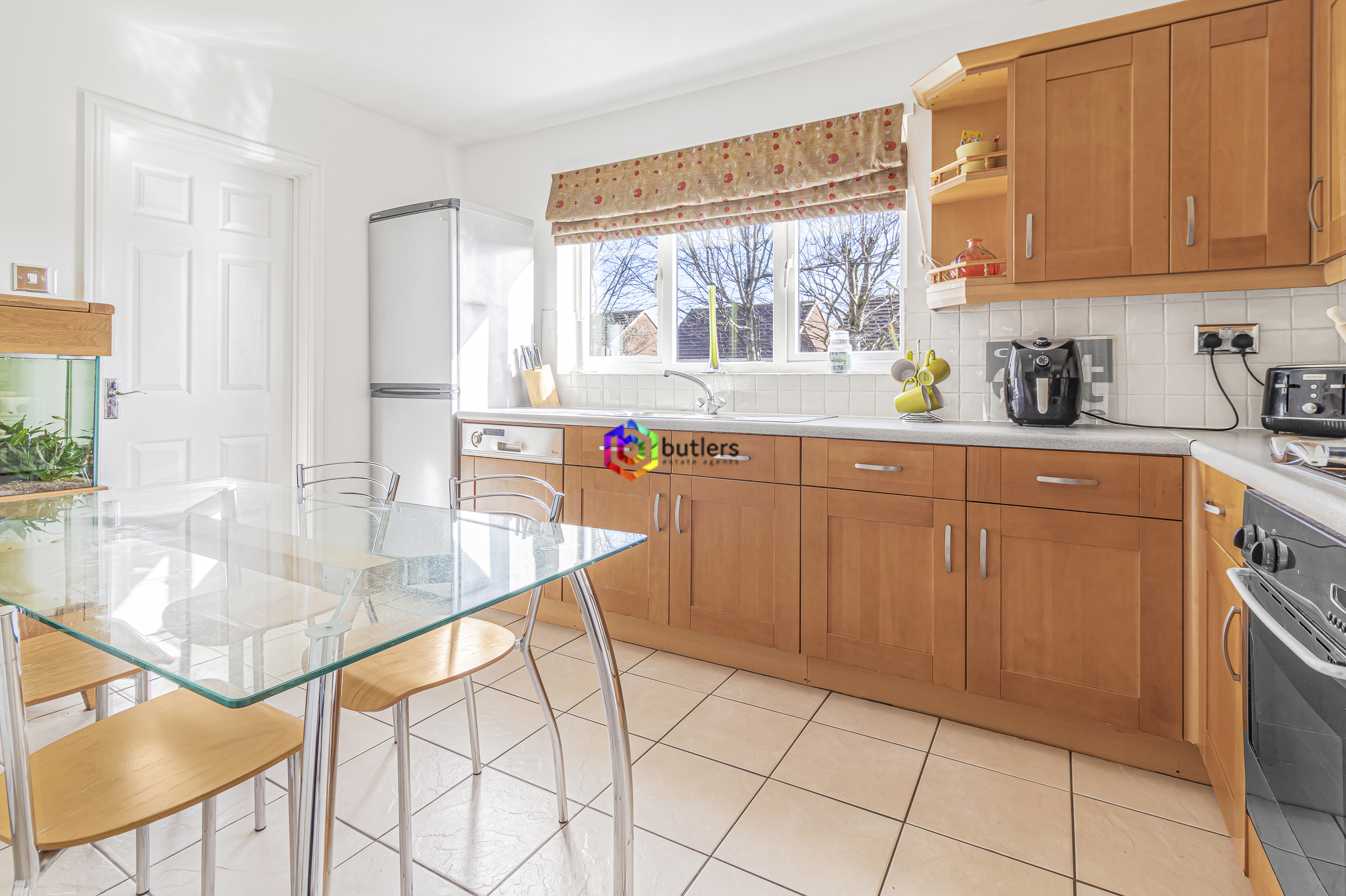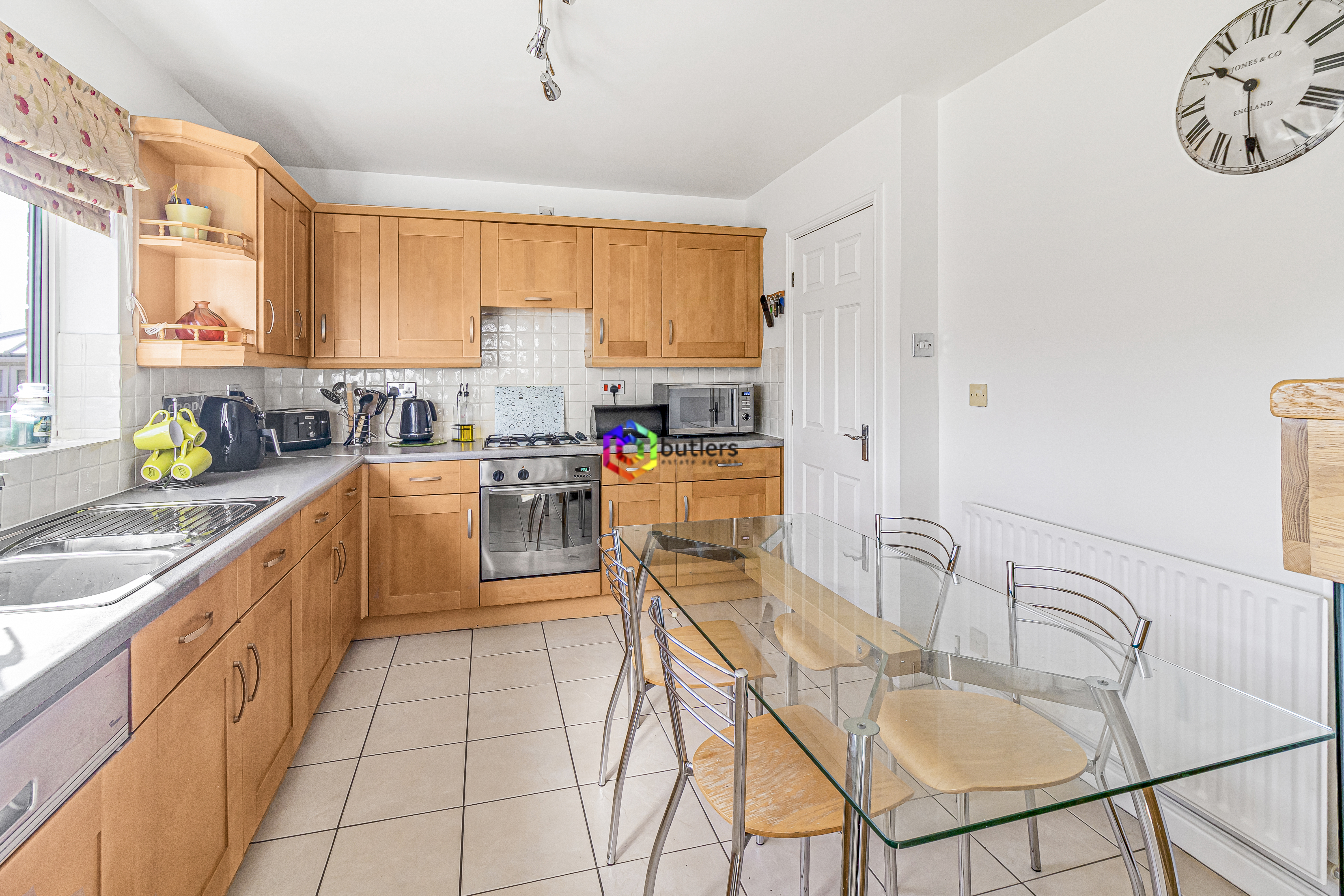 A great sized kitchen/breakfast room with a range of wall and floor mounted beech wooden units with contrasting worksurfaces. There is a single stainless steel electric oven, gas hob and extractor above, along with a fully integrated dishwasher. A large rear facing window and space for a dining table and chair set make this space ideal for families and entertaining alike.