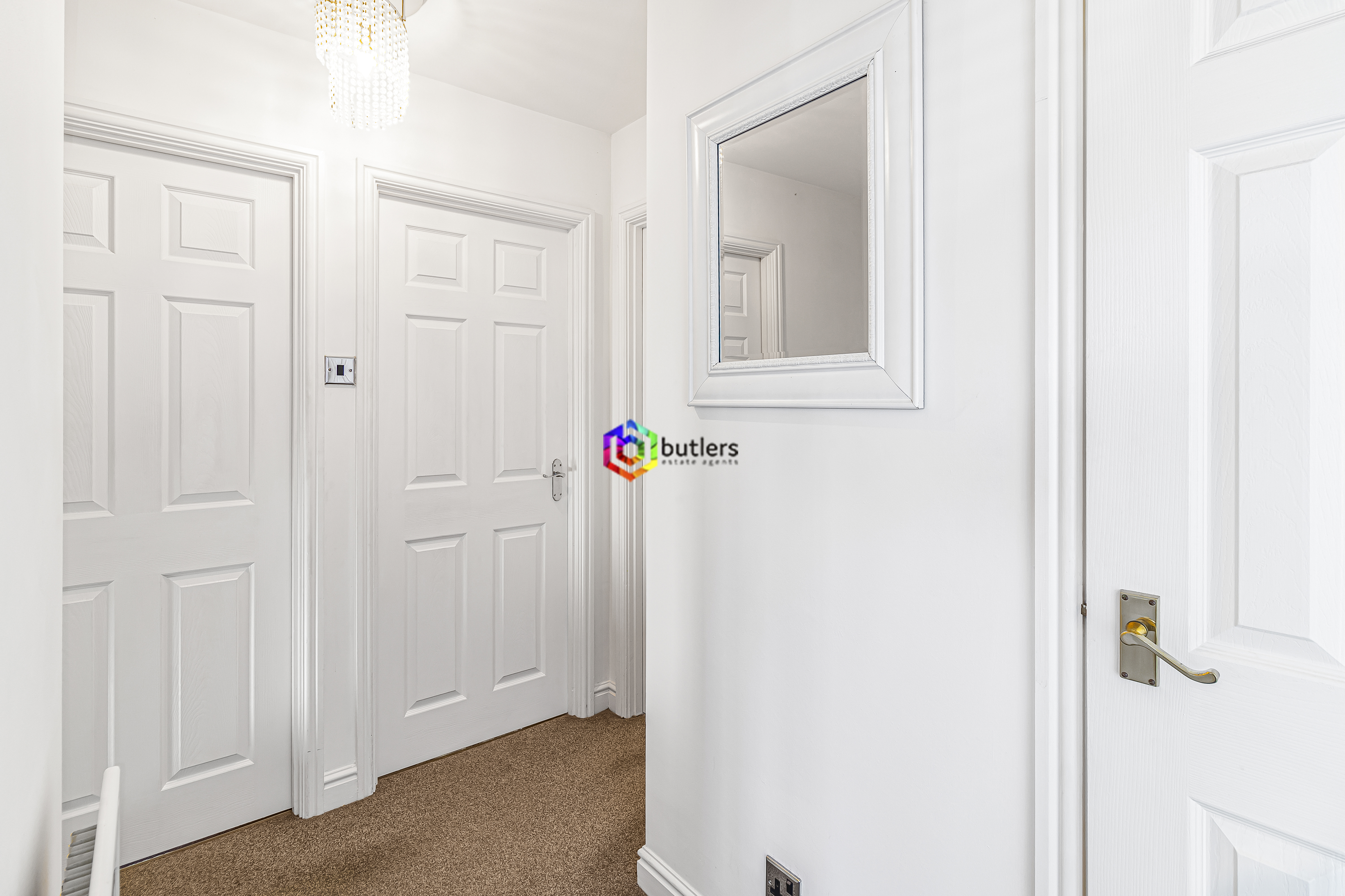 Providing access to all bedrooms and the bathroom. There is a useful storage cupboard.