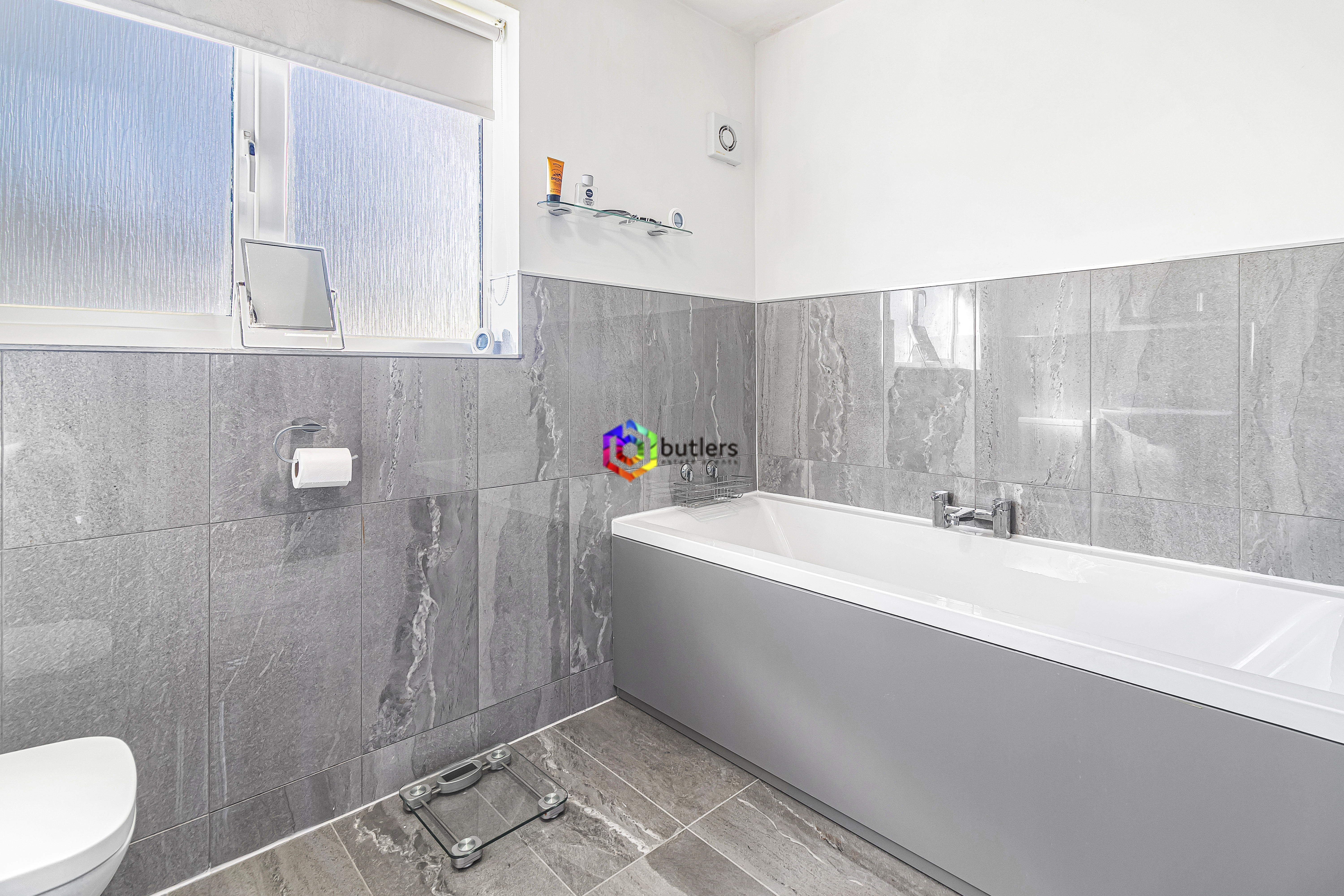 The recently refurbished family bathroom is finished to a high standard, featuring modern fittings and quality tiling.