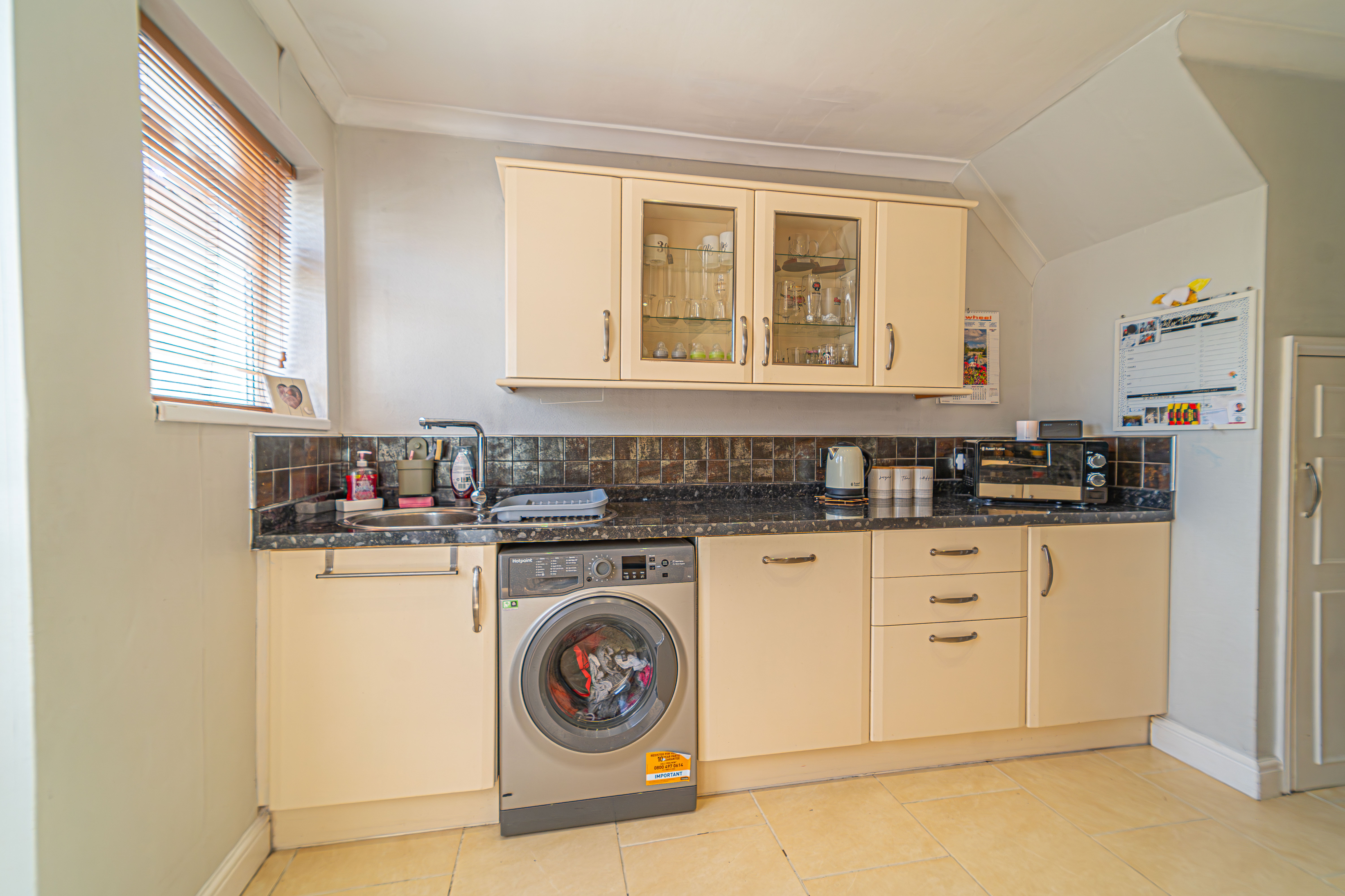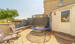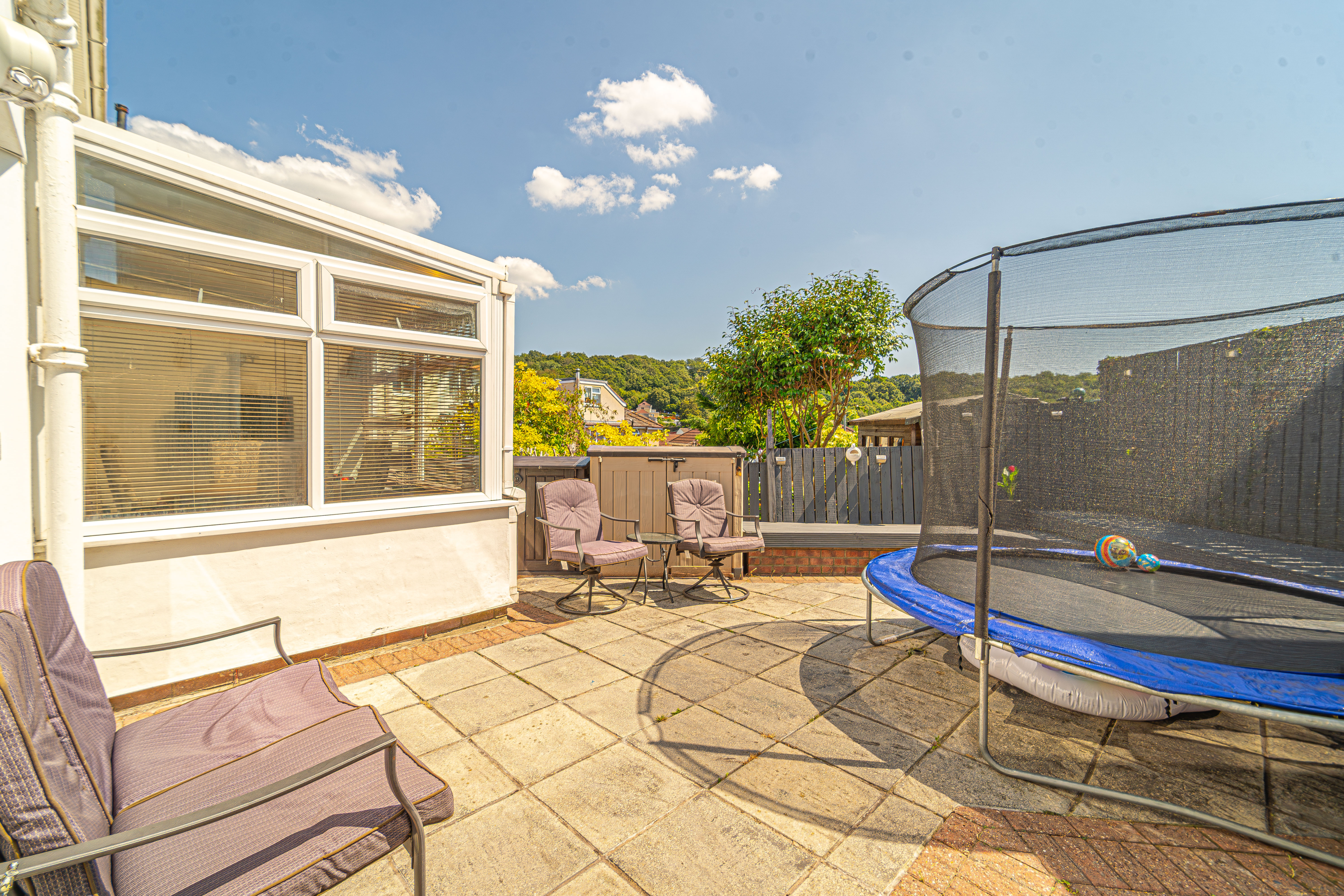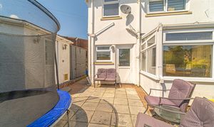 Stepping outside we have the rear garden, consisting of a large patio that extends from the house, presenting a wonderfully cosy space to enjoy dining al-fresco and sunbathing with friends and family, and is the perfect space to unwind at the end of a long day. From the patio garden we can access the superb storage shed, fitted with electricity and plumbing and tiling, and is the perfect space for a multi-function room. While formerly used as a salon, this space would also suit as a home office, games room, or simply as an additional storage space. There are also many electric points located throughout the garden, and a side gate to provide another access point to the garden or shed.