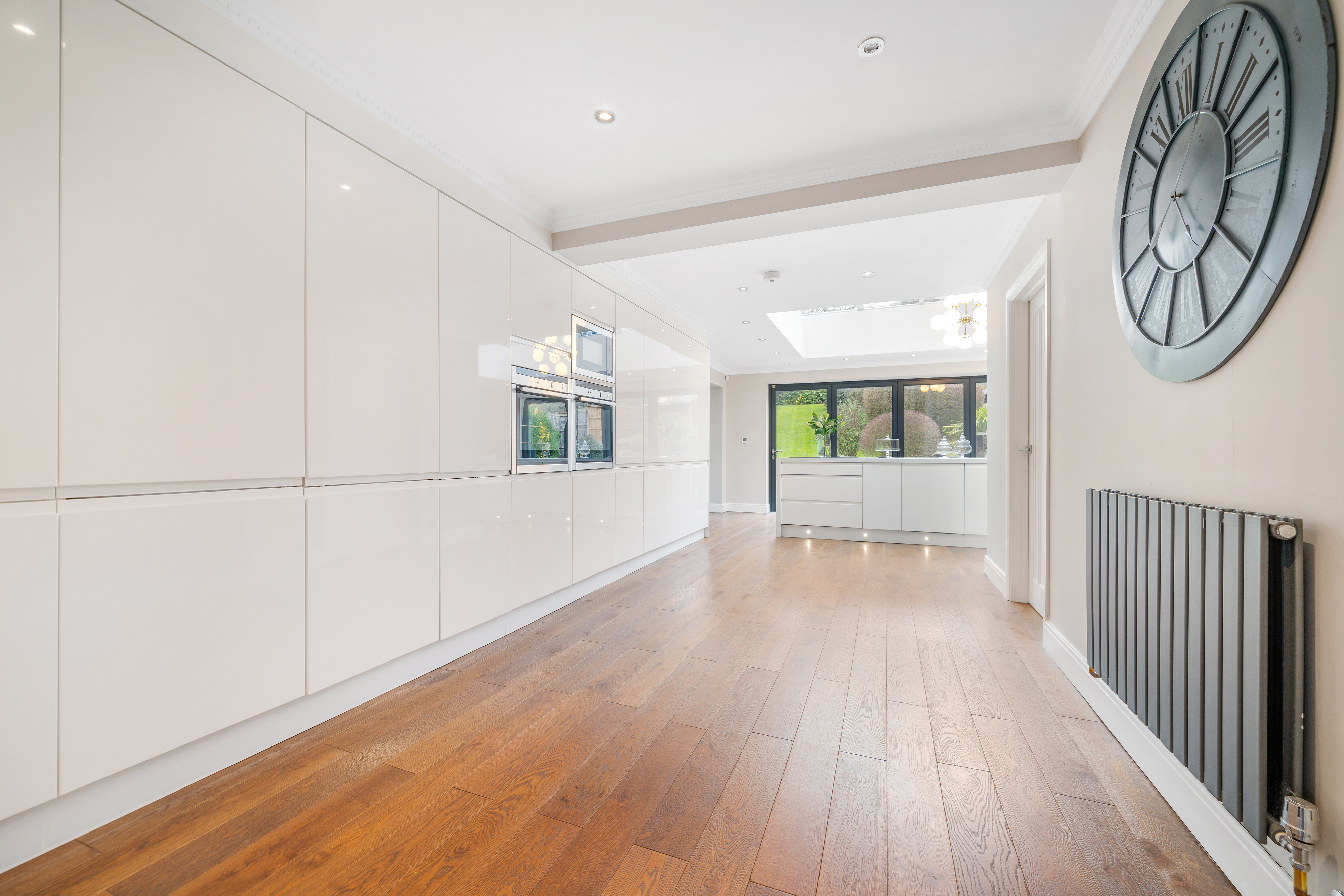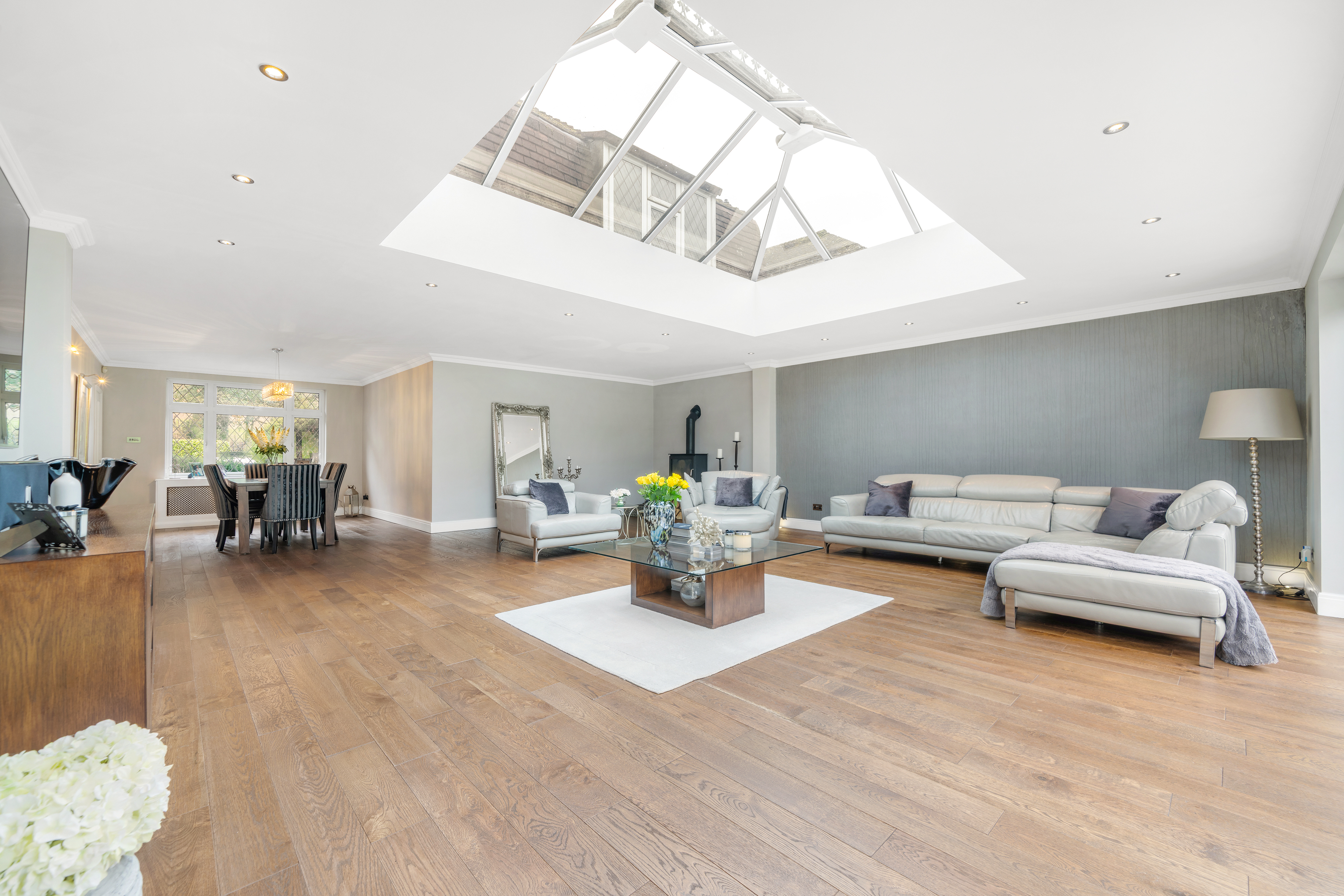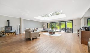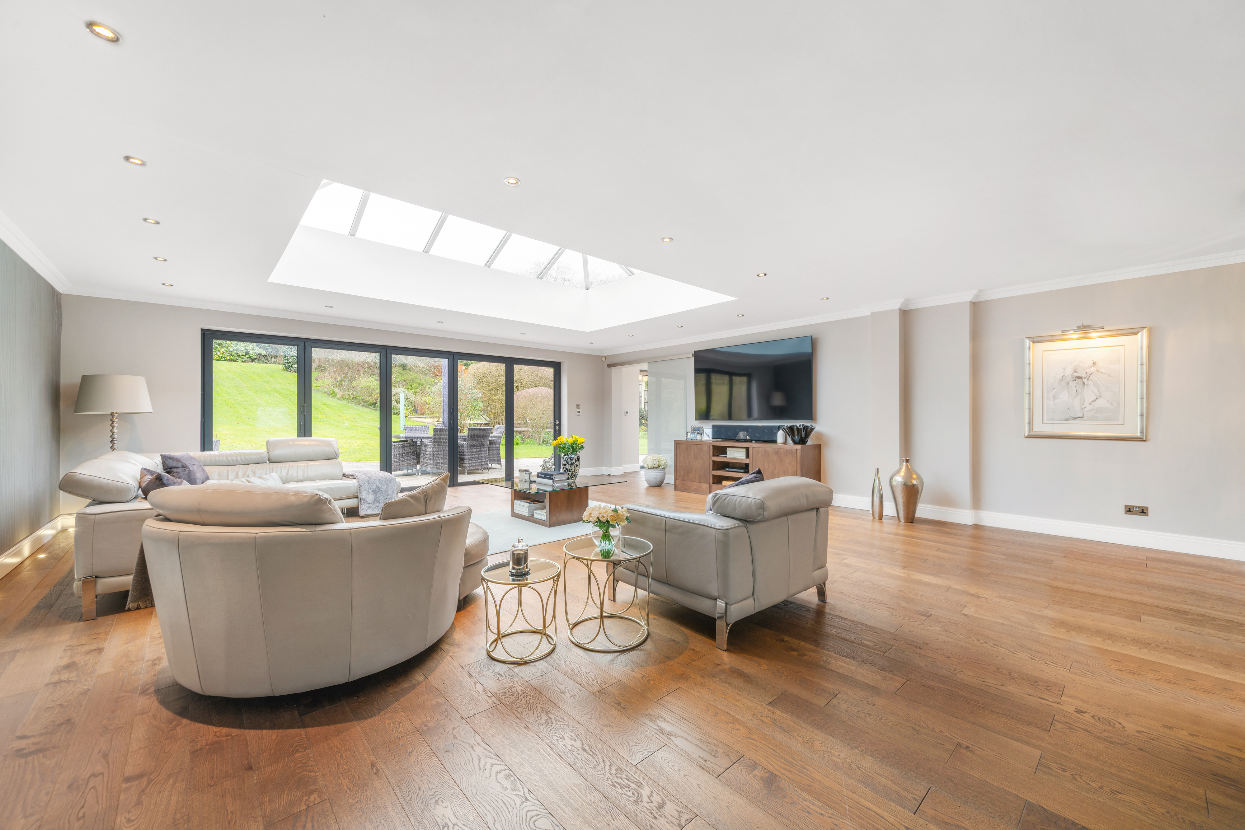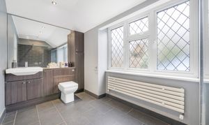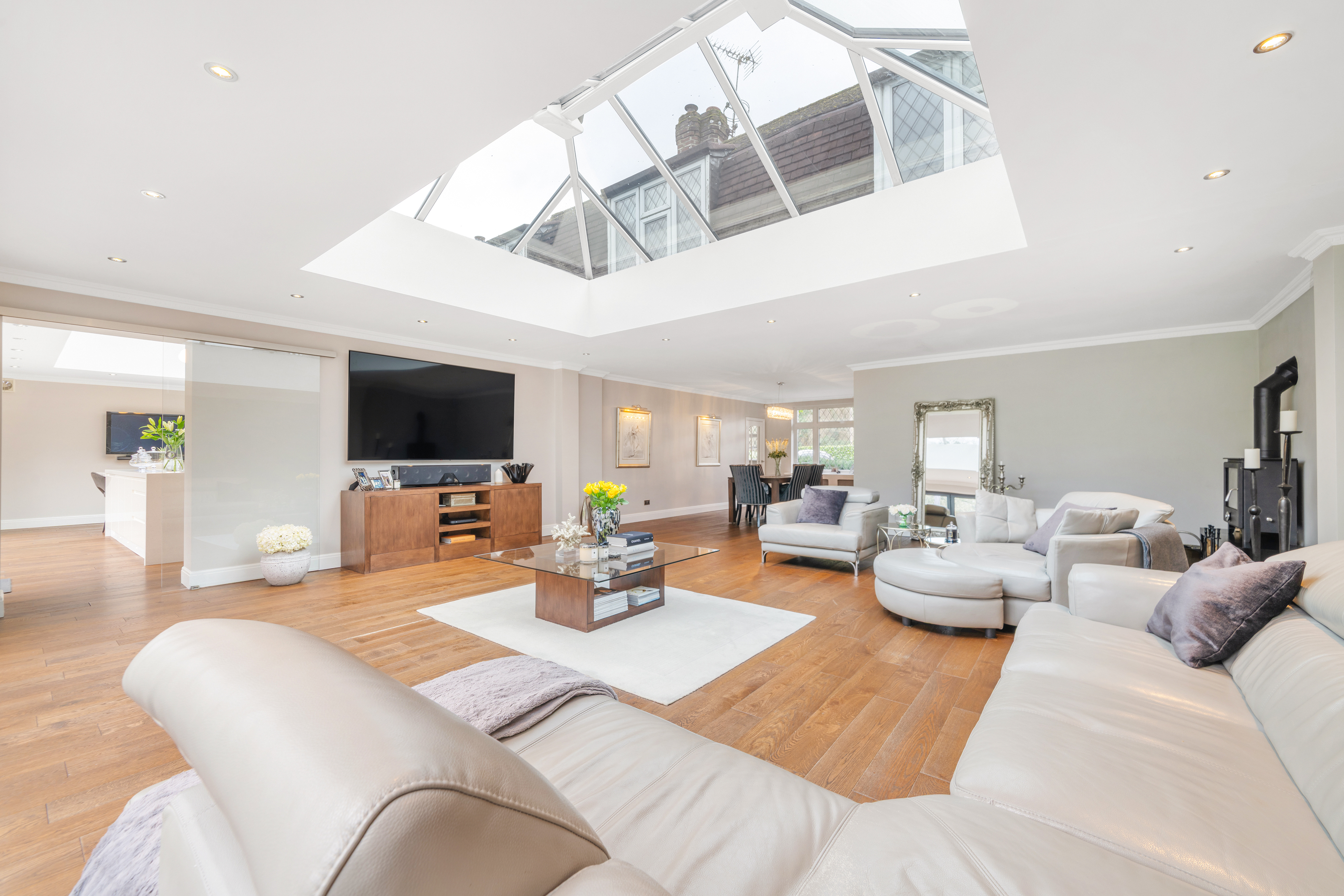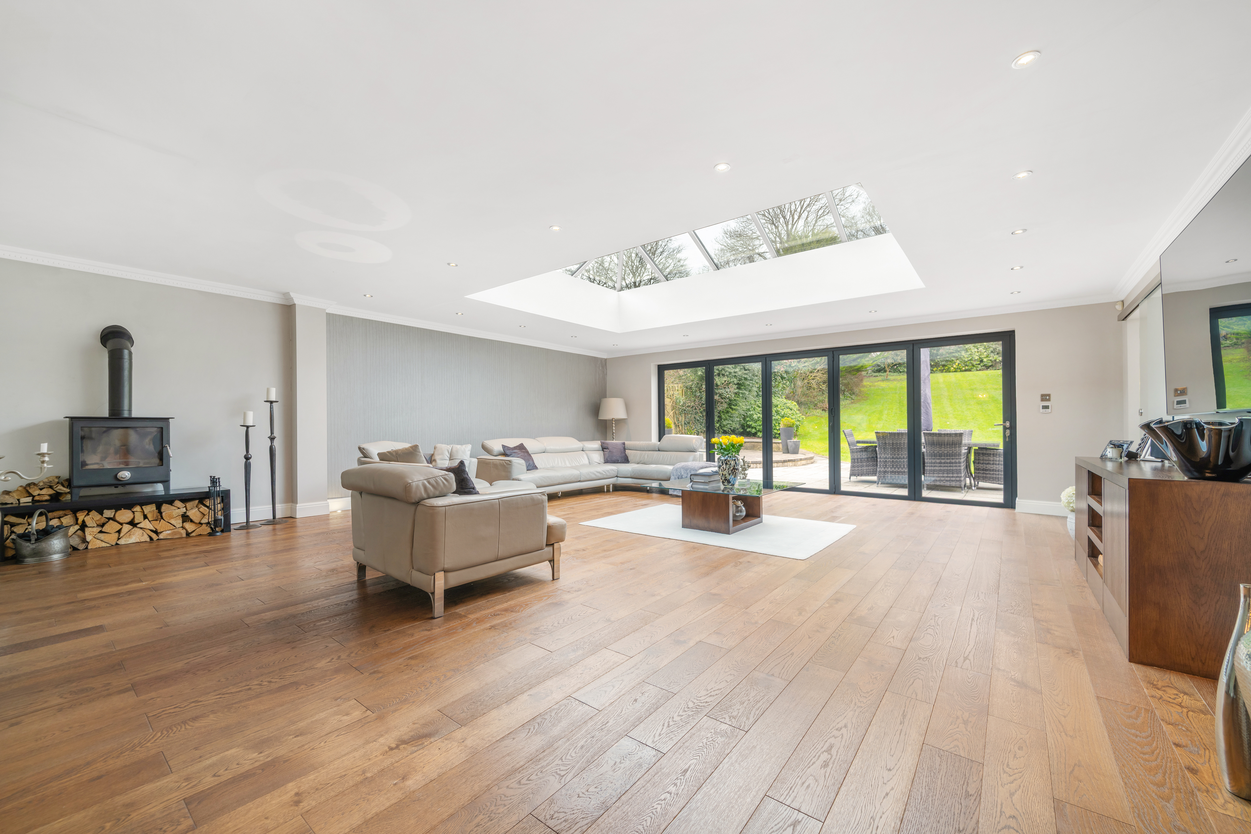 The property is well presented throughout and has been extended by the current owners, the ground floor offers versatile accommodation and comprises, entrance hallway, 37ft reception room with reflective glass roof lantern, log burning stove and bi folding doors opening to the garden. The contemporary kitchen/diner has a range of white high gloss wall and base units, quartz worksurfaces, induction hob, breakfasting island with mounted TV, undercounter fridge, built-in double Neff oven, microwave, integrated dishwasher, full height fridge and freezer and a further set of bi folding doors and roof lantern. The property also benefits from a utility room, cloakroom and a further reception room with character beams, this could be used as a study, playroom or guest bedroom. Other features to note, under floor heating, engineered oak flooring, leaded light windows, pendant lighting, roman blinds, anthracite radiators and security alarm system.