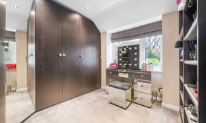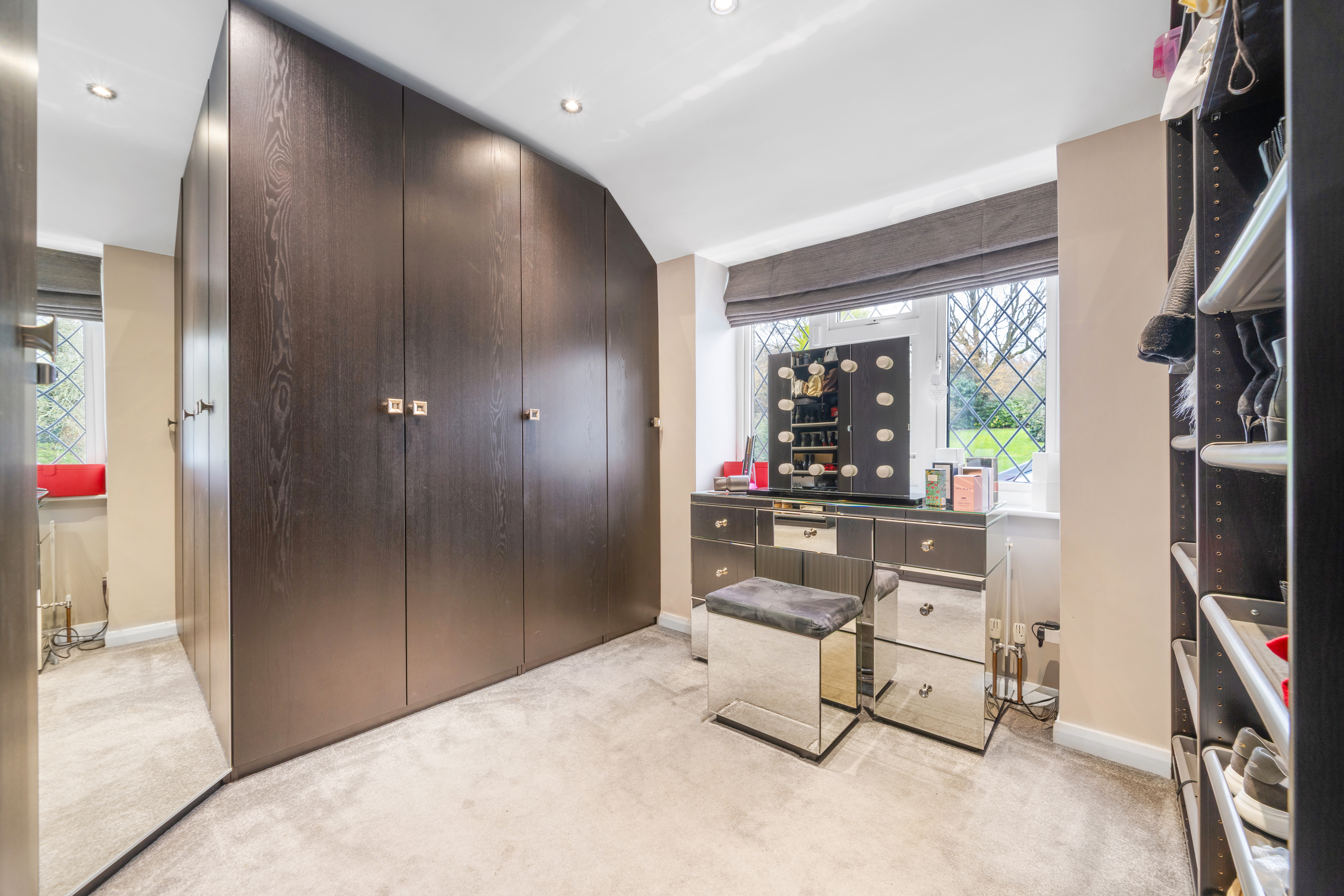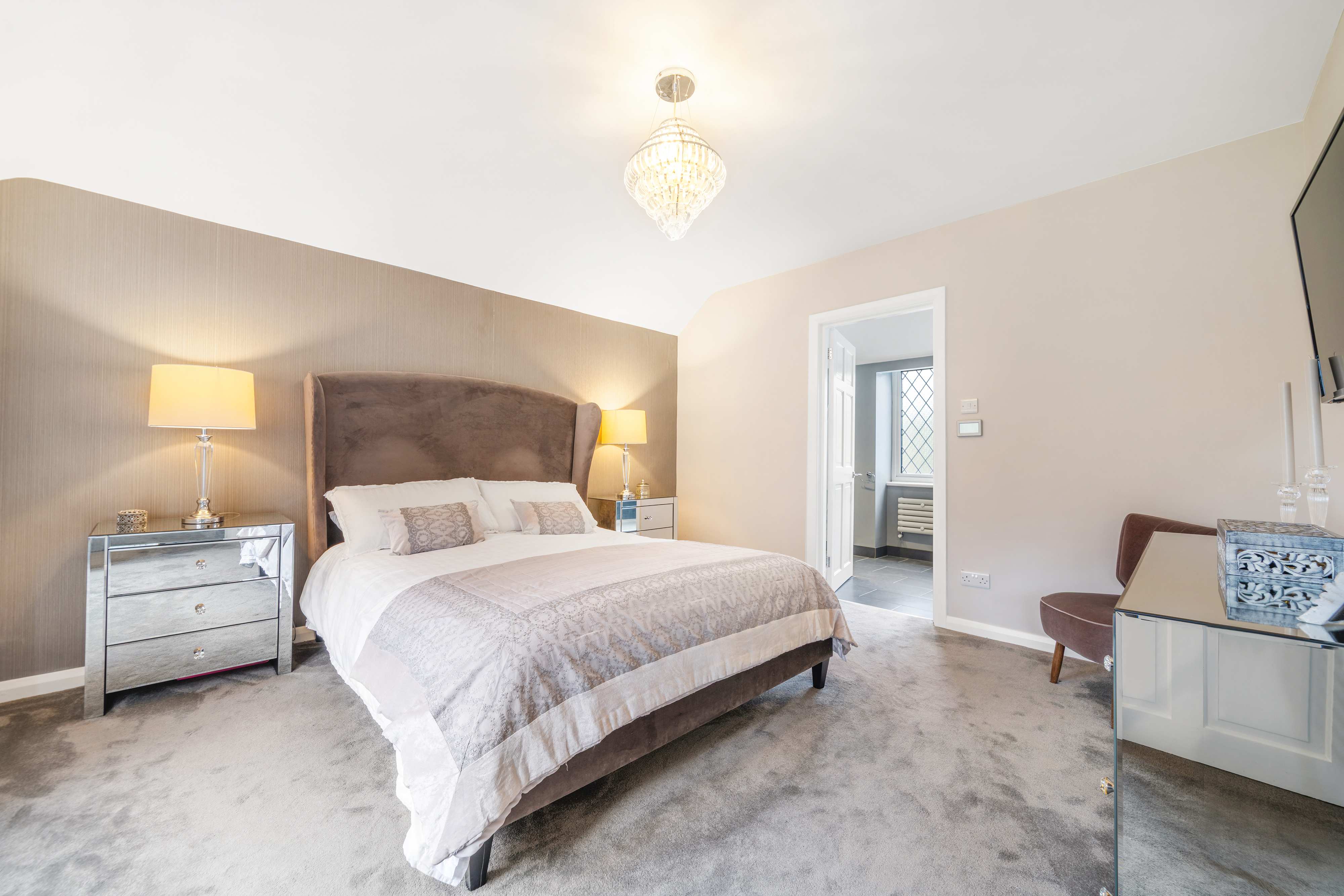 To the first floor there are four bedrooms, some with a range of fitted wardrobes and cupboards, ensuite to master with large shower enclosure, heated towel rail and vanity storage, and a family bathroom with freestanding bath and separate shower enclosure. There is a loft space with ladder and light, airing cupboard and stairway with glass balustrade.