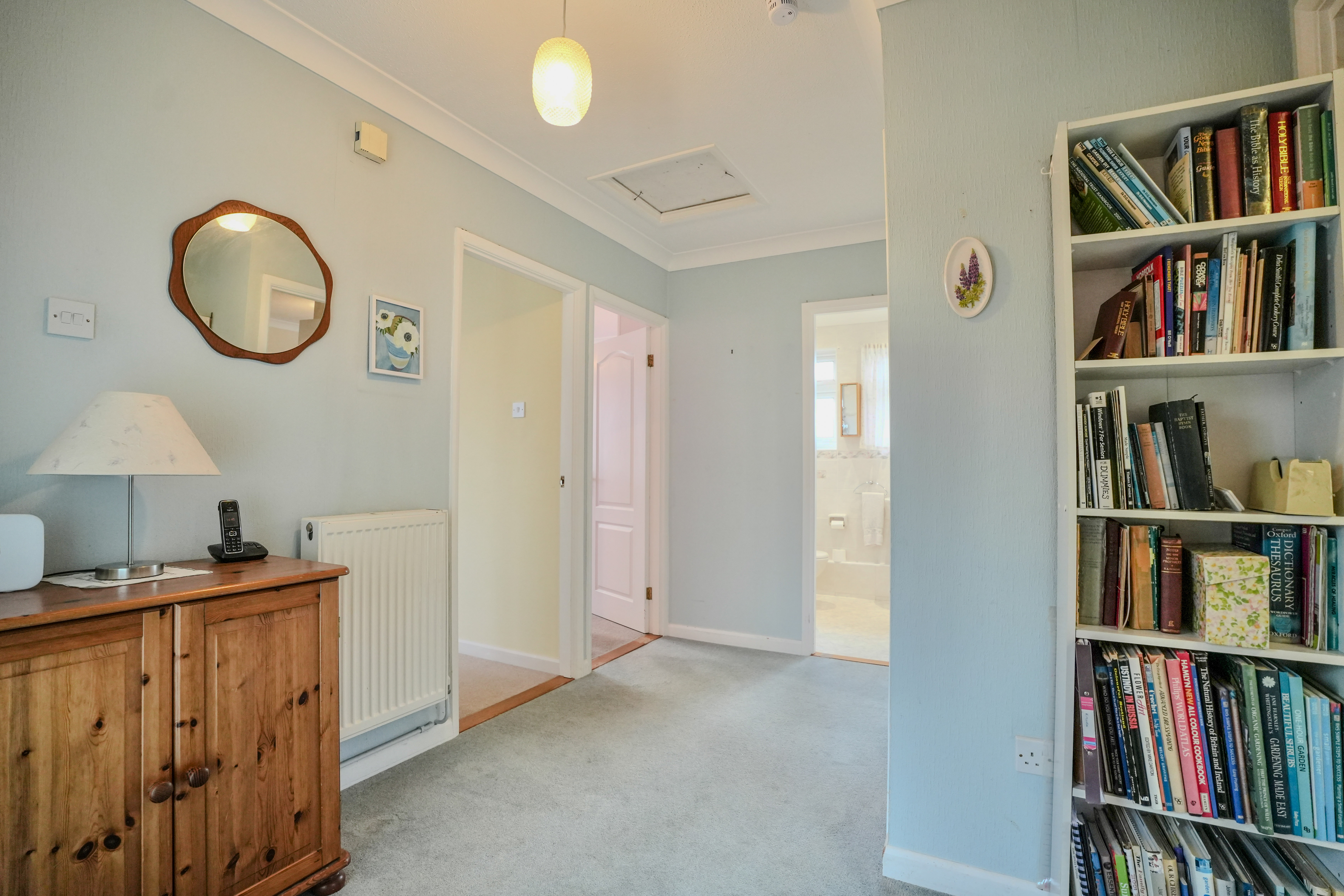 Carpeted flooring, wall mounted radiator, loft access hatch, built-in cupboard, doors to the lounge/diner, kitchen, bathroom, bedrooms 1, 2, and 3.