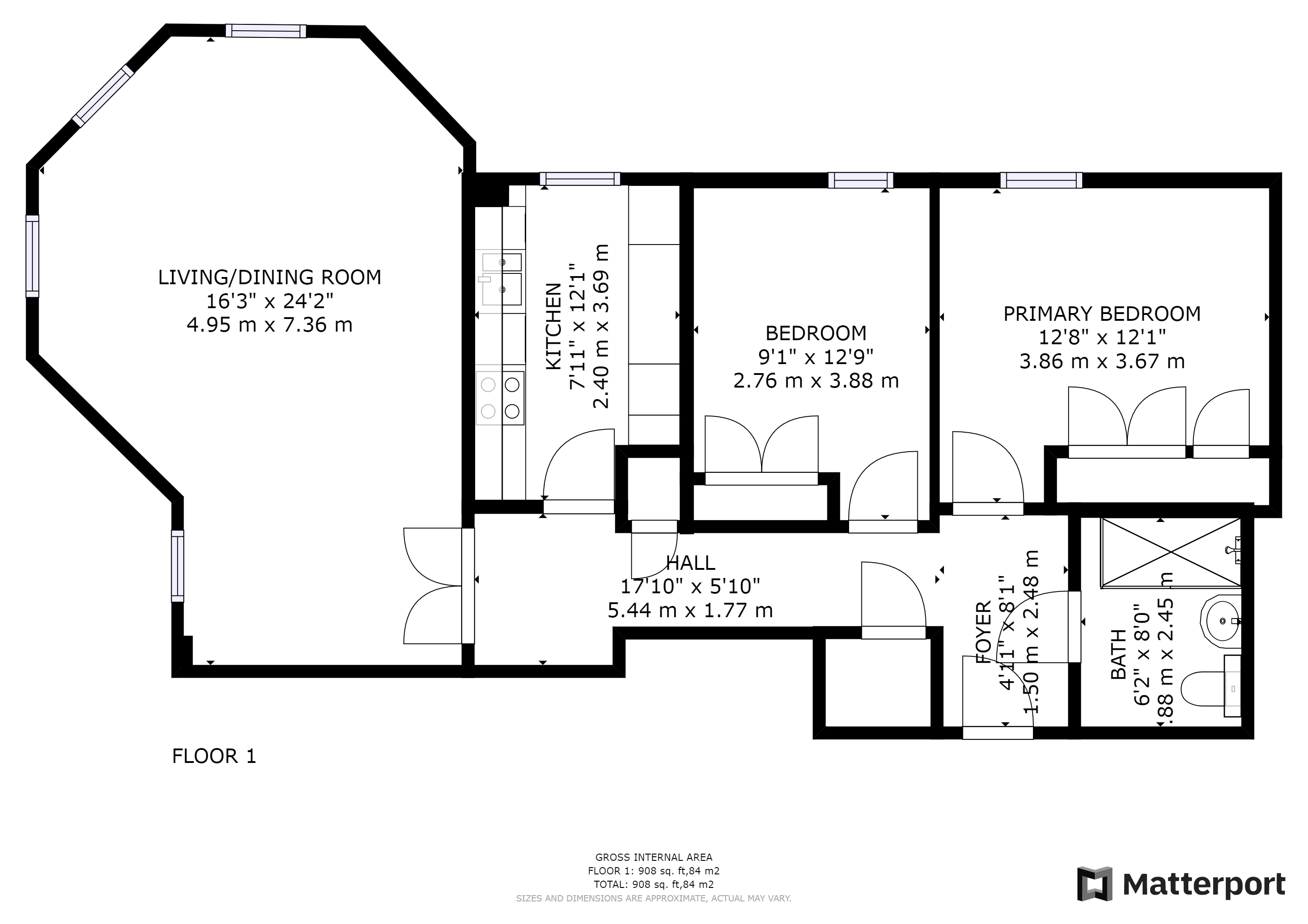 - Approx Sq Feet: 905 sqft