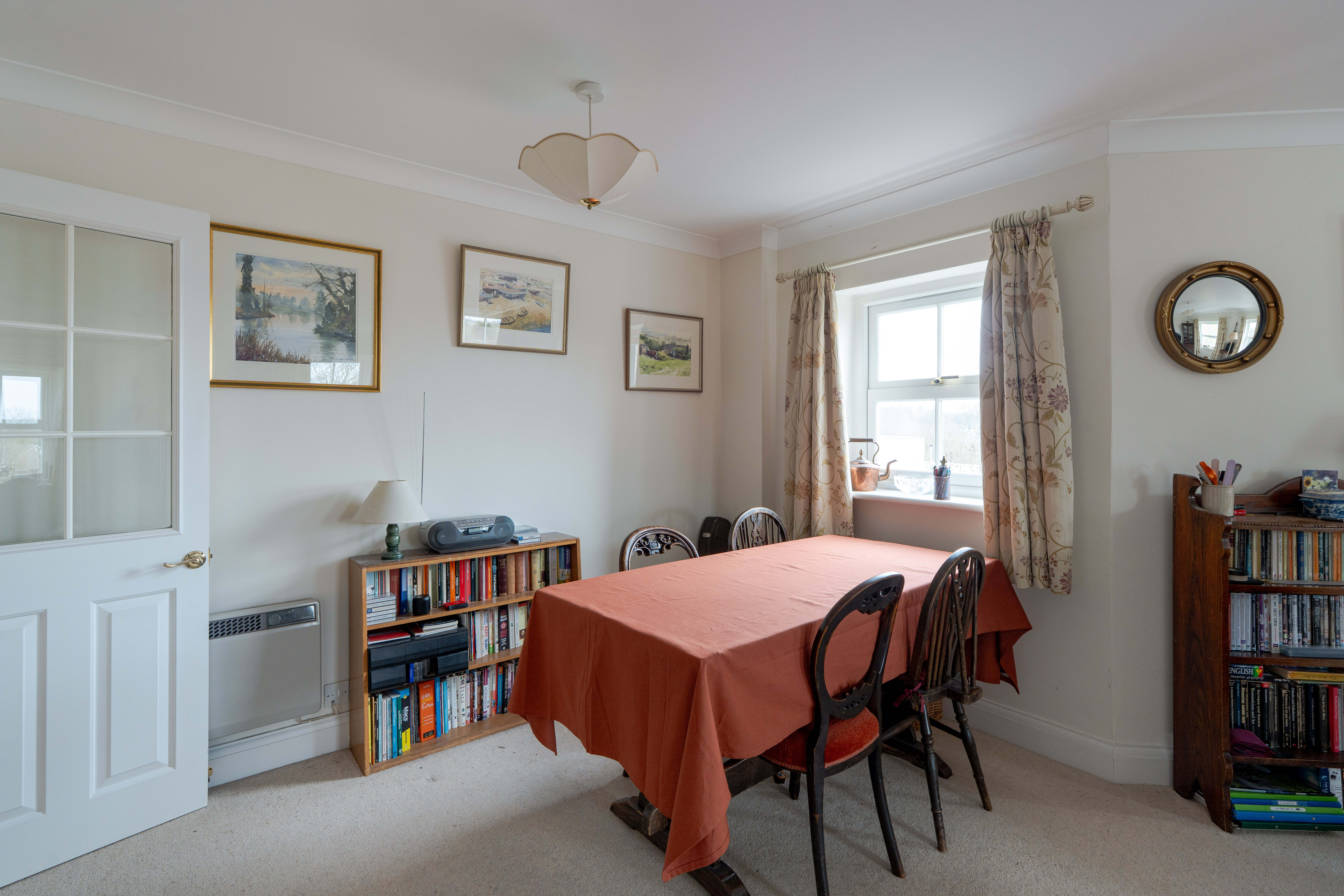 The accommodation comprises of a spacious hallway that leads you through the well-proportioned yet practical floorplan. You will find two spacious bedrooms both offering the added benefit of built-in storage. There is a walk in shower room that is spacious and has been finished to a high specification. A generous reception room in the turret part of the building services the apartment allowing for a perfect space for relaxing and dining. Natural light flows into the room along with favourable picturesque views out onto open fields overlooking the Glyme. The fitted kitchen also offers the added benefit of ample cupboard space and a window to the side.
