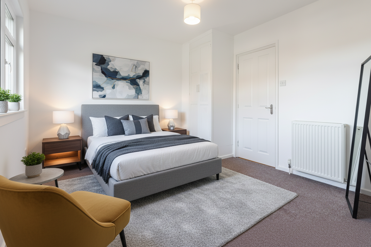 Upstairs, you’ll find three generous double bedrooms, each offering fantastic space for double beds and additional furniture. The neutral décor and abundance of natural light give each room a calm and welcoming feel, while the storage options are impressive, with ample wardrobe space throughout. Whether you’re looking for a home office, a nursery, or simply a peaceful retreat, these rooms offer wonderful flexibility. Completing the upper level is a contemporary W/C, adding both convenience and style.