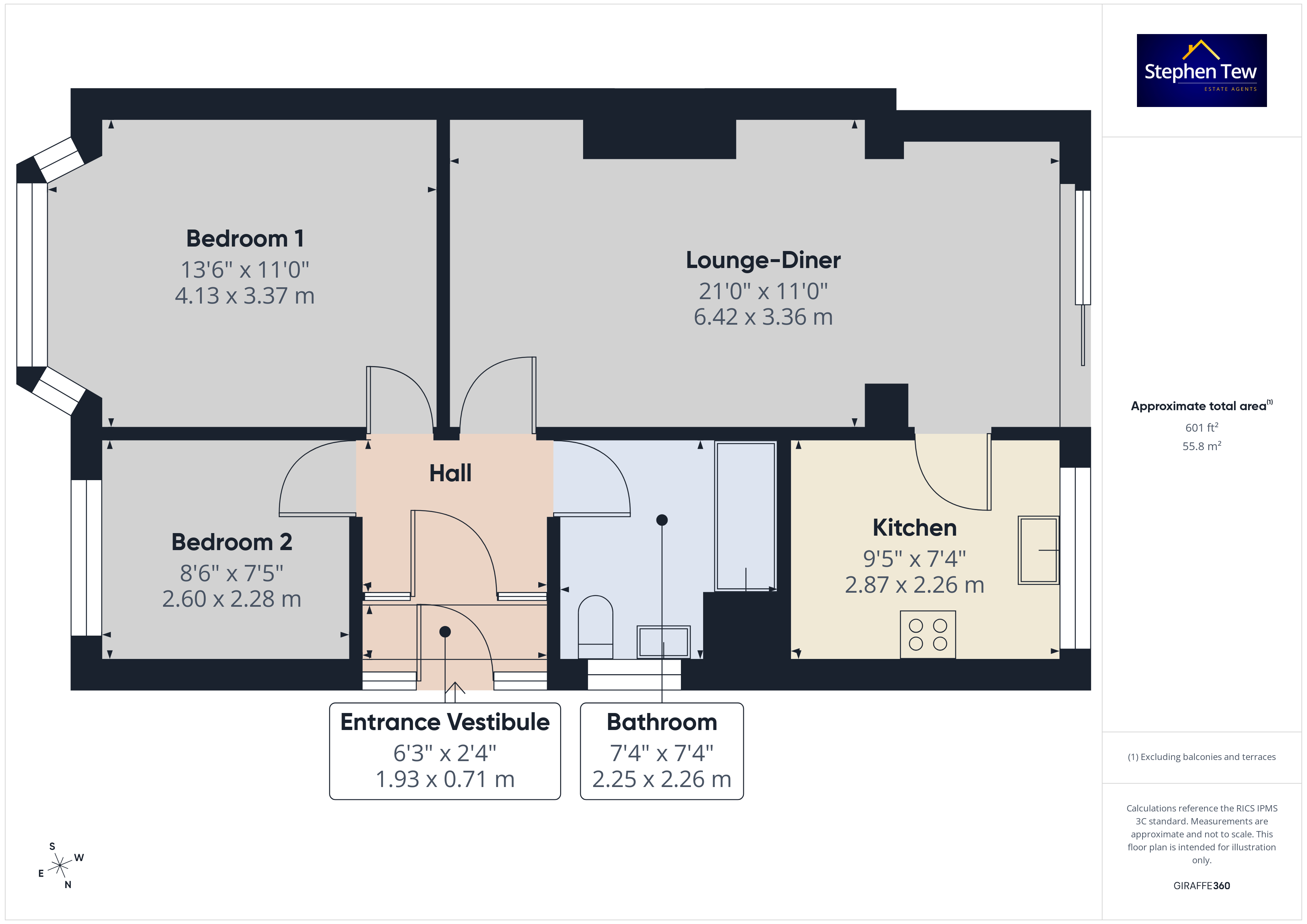 - Entrance to 2 Bedrooms, Bathroom, Lounge-Diner and Kitchen