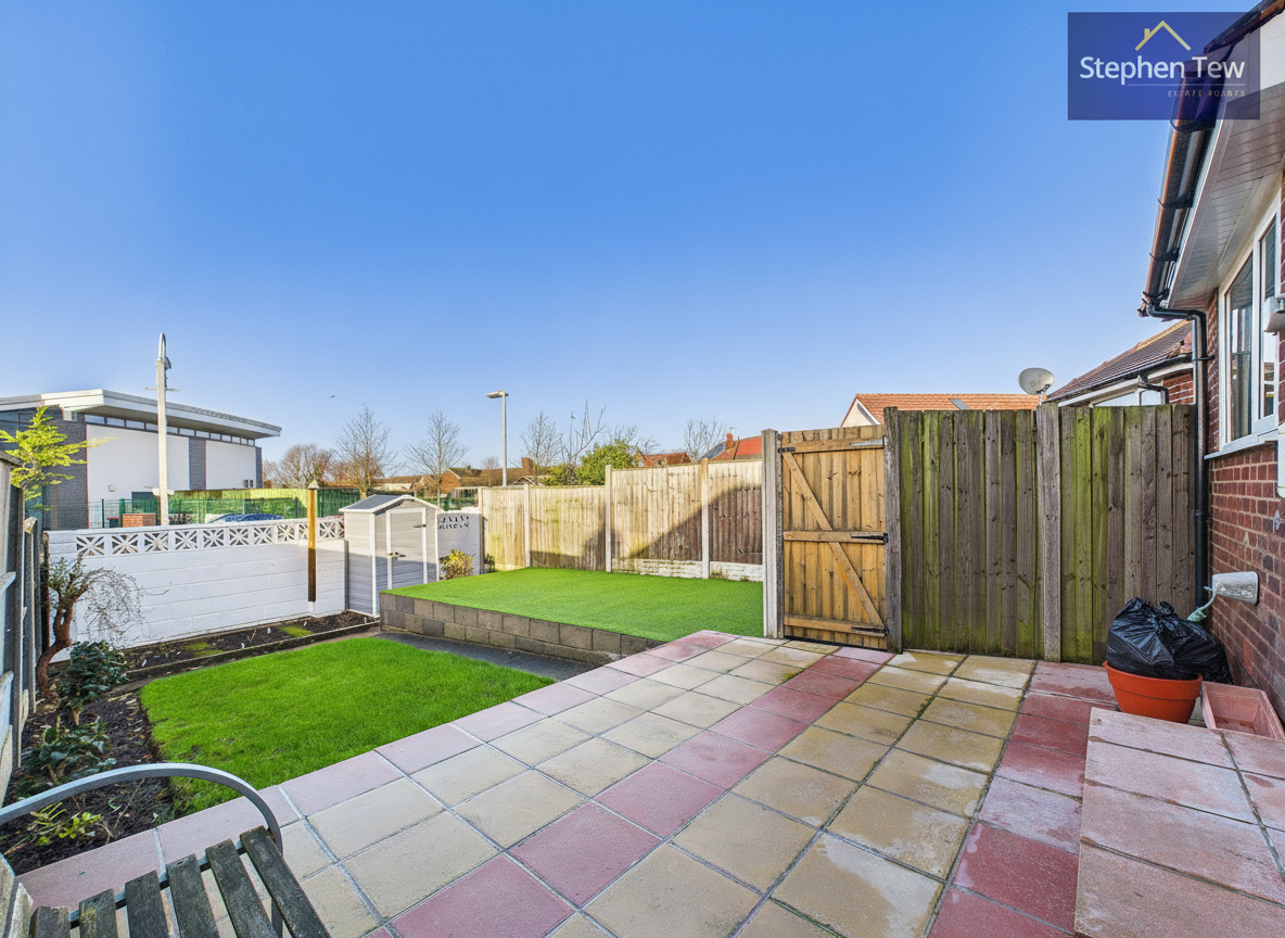 Upon entering the bungalow, you are greeted by a welcoming hallway that provides access to all principal rooms. The spacious lounge-diner is tastefully decorated and benefits from ample natural light, creating a warm and inviting atmosphere for both relaxing and entertaining. Sliding doors at the rear of the lounge-diner offer direct access to the patio area, making this a versatile space for every-day living.