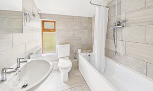 Heading upstairs, the carpeted landing leads to the two bedrooms and family bathroom, with the main bedroom sitting to the rear including a recessed wardrobe space, built-in storage cupboard and fitted carpet underfoot. The second bedroom sits to the front with fitted carpet and uPVC double glazing. Completing the property is a family bathroom with a modern white three piece suite including a panelled bath, with thermostatically controlled shower, tiled splash-backs and flooring.