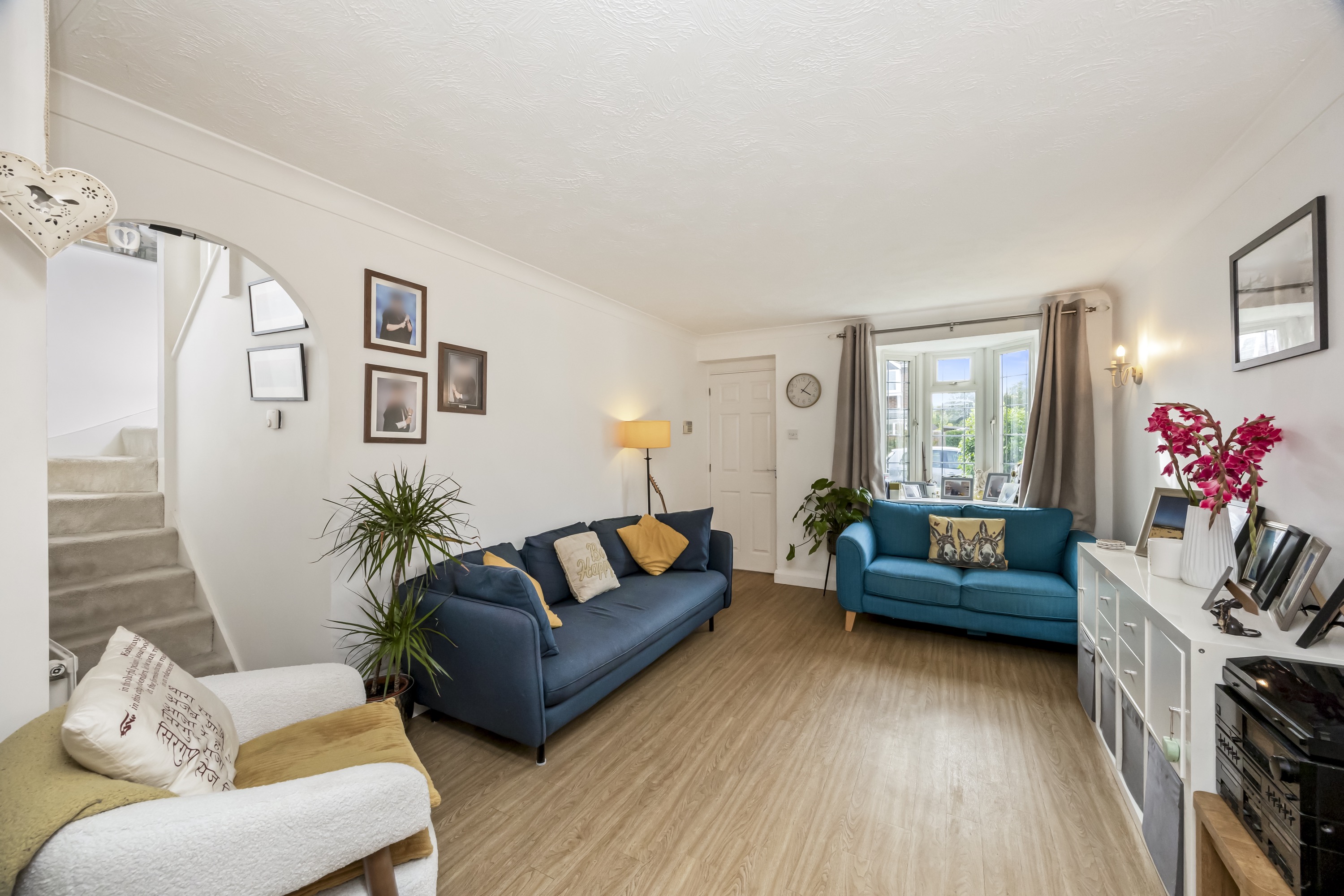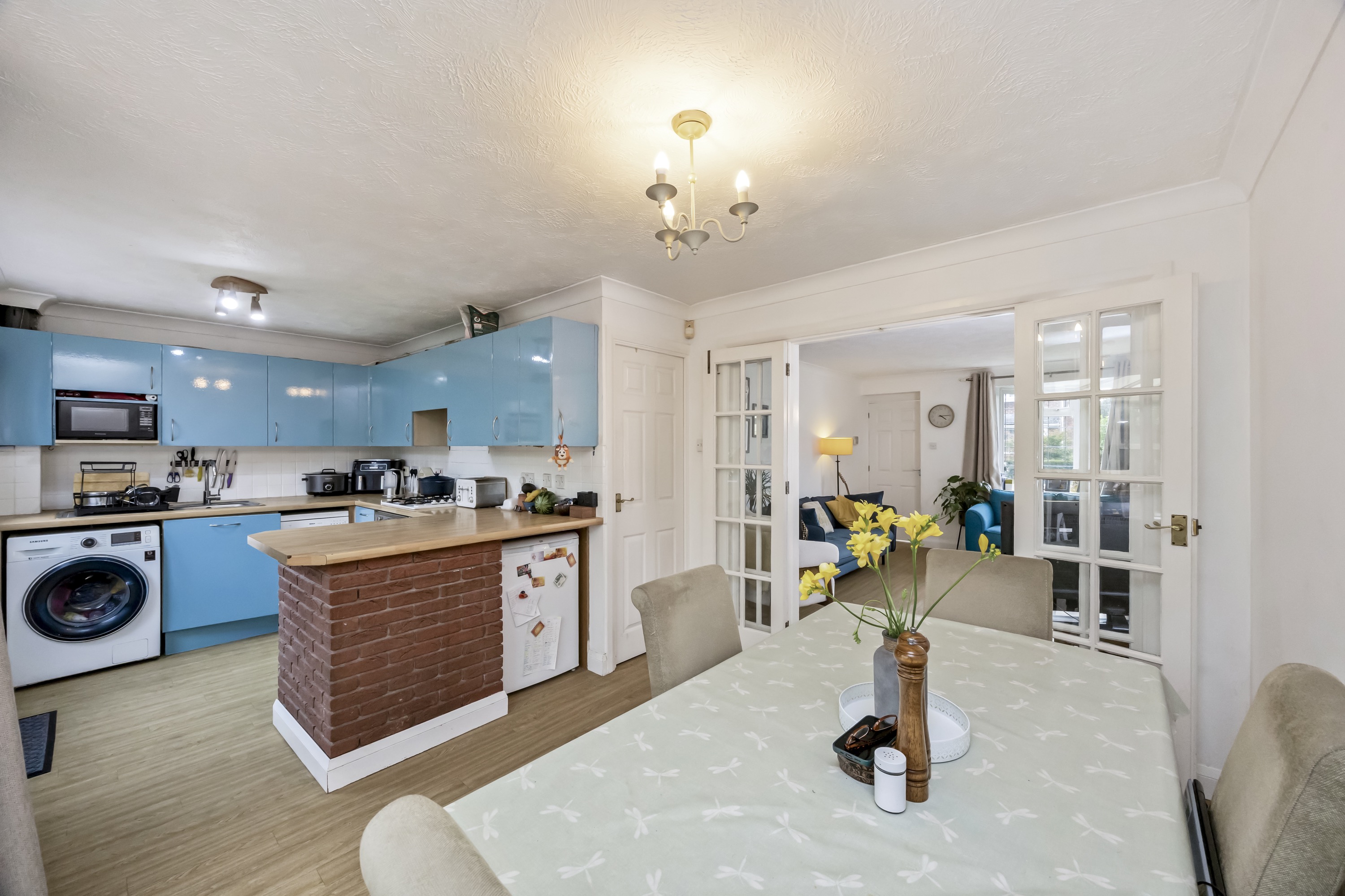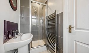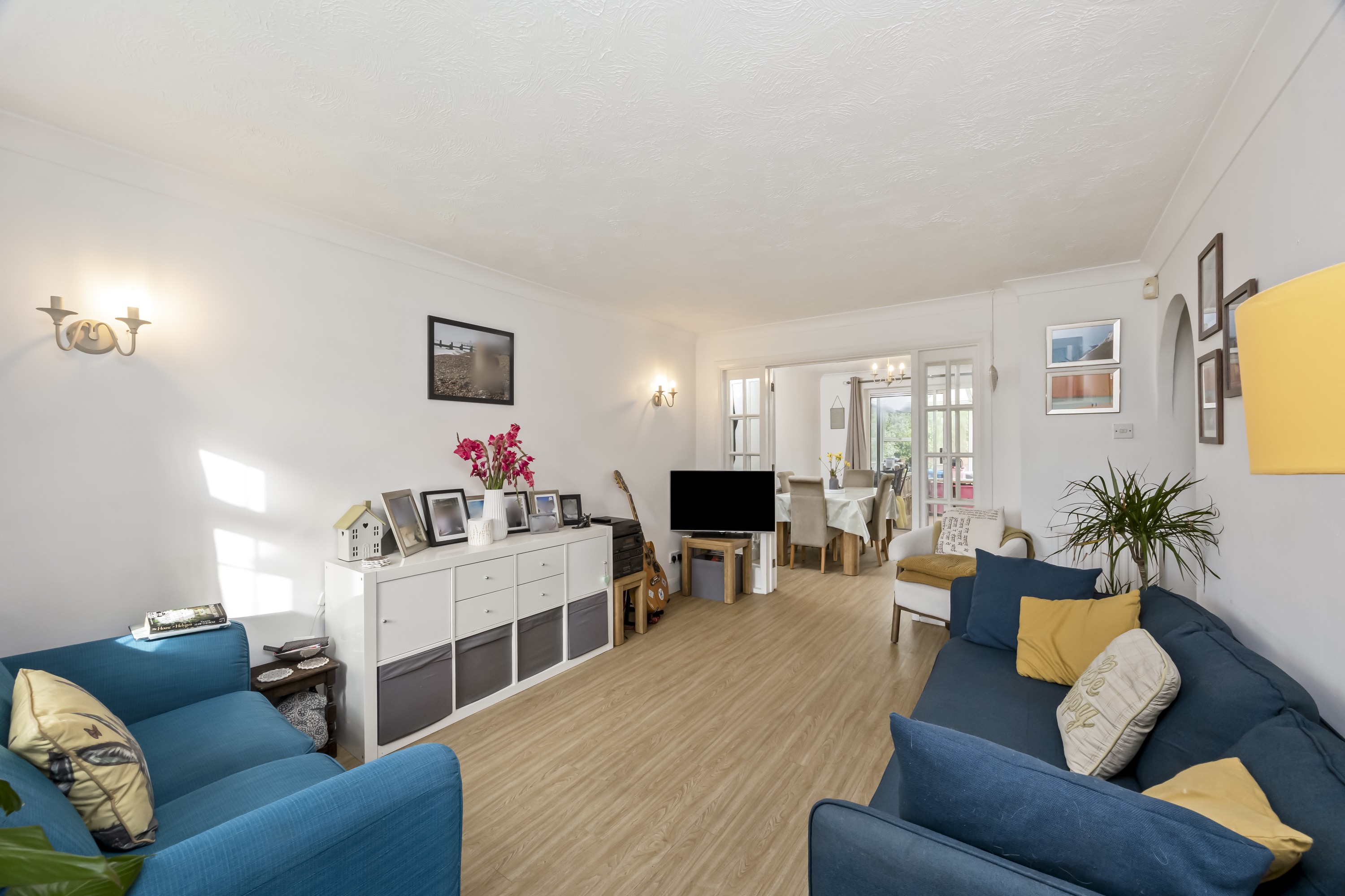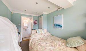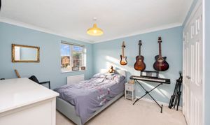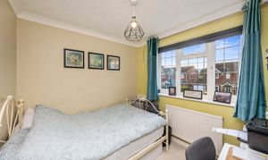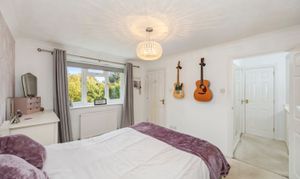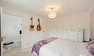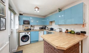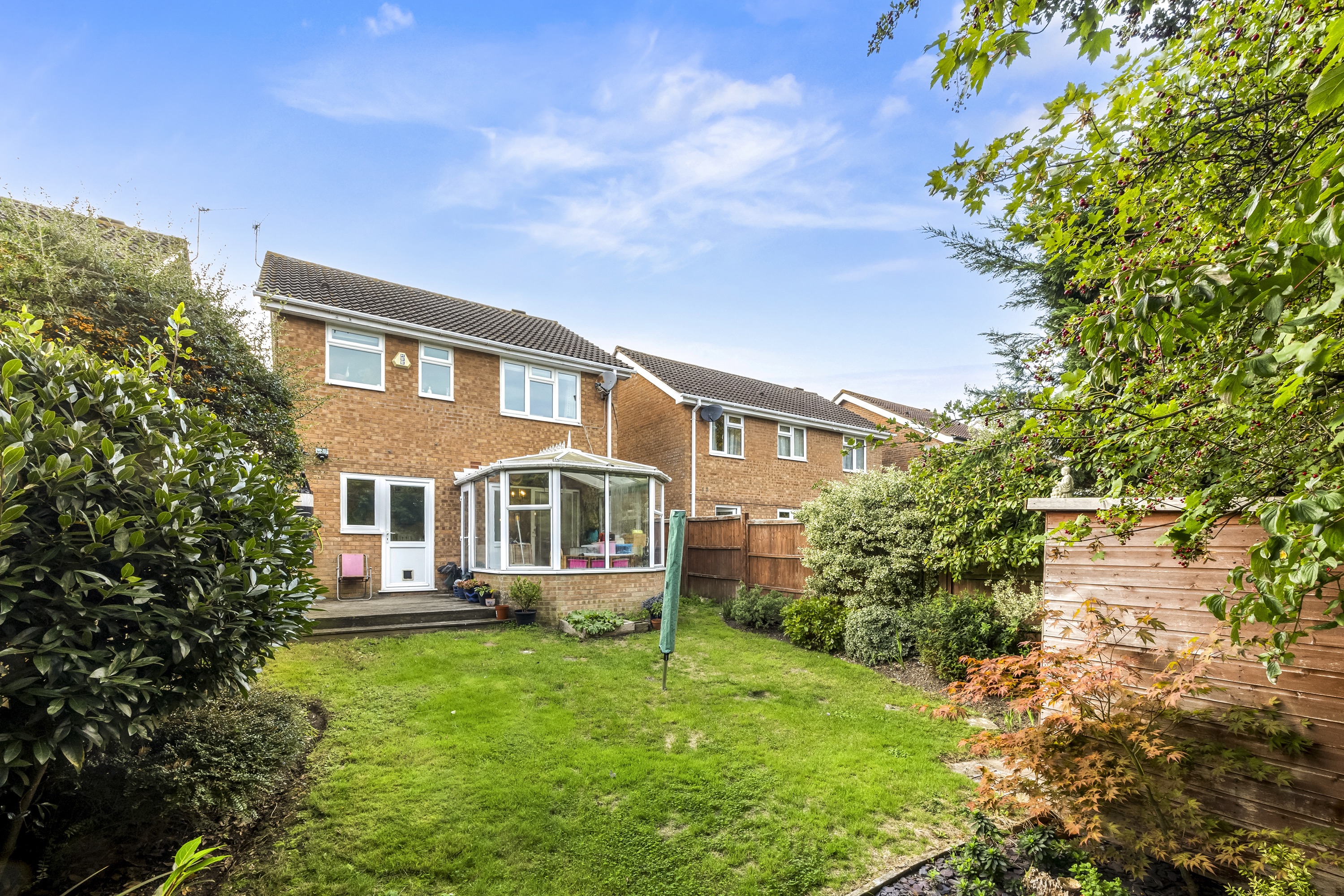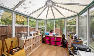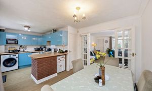 This impressive four-bedroom, three-bathroom detached house offers an exceptional blend of modern comfort and elegant design, ideal for families and discerning buyers alike. The property welcomes you with a well-maintained front garden and off-road parking, enhancing kerb appeal and every-day convenience. Step inside to discover two spacious reception rooms, including a bright living area with a bay window, modern wood-effect LTV flooring and a calming neutral palette. The open plan kitchen and dining area is a true highlight, featuring sleek blue cabinetry, integrated appliances, and a stylish breakfast bar - perfect for entertaining or family gatherings. French doors connect the living space seamlessly to the garden, while a charming conservatory provides a sunlit retreat to enjoy tranquil garden views year-round. The ground floor is completed by a double bedroom with en-suite shower room, perfect for when guests come to stay or for someone who may struggle with stairs!