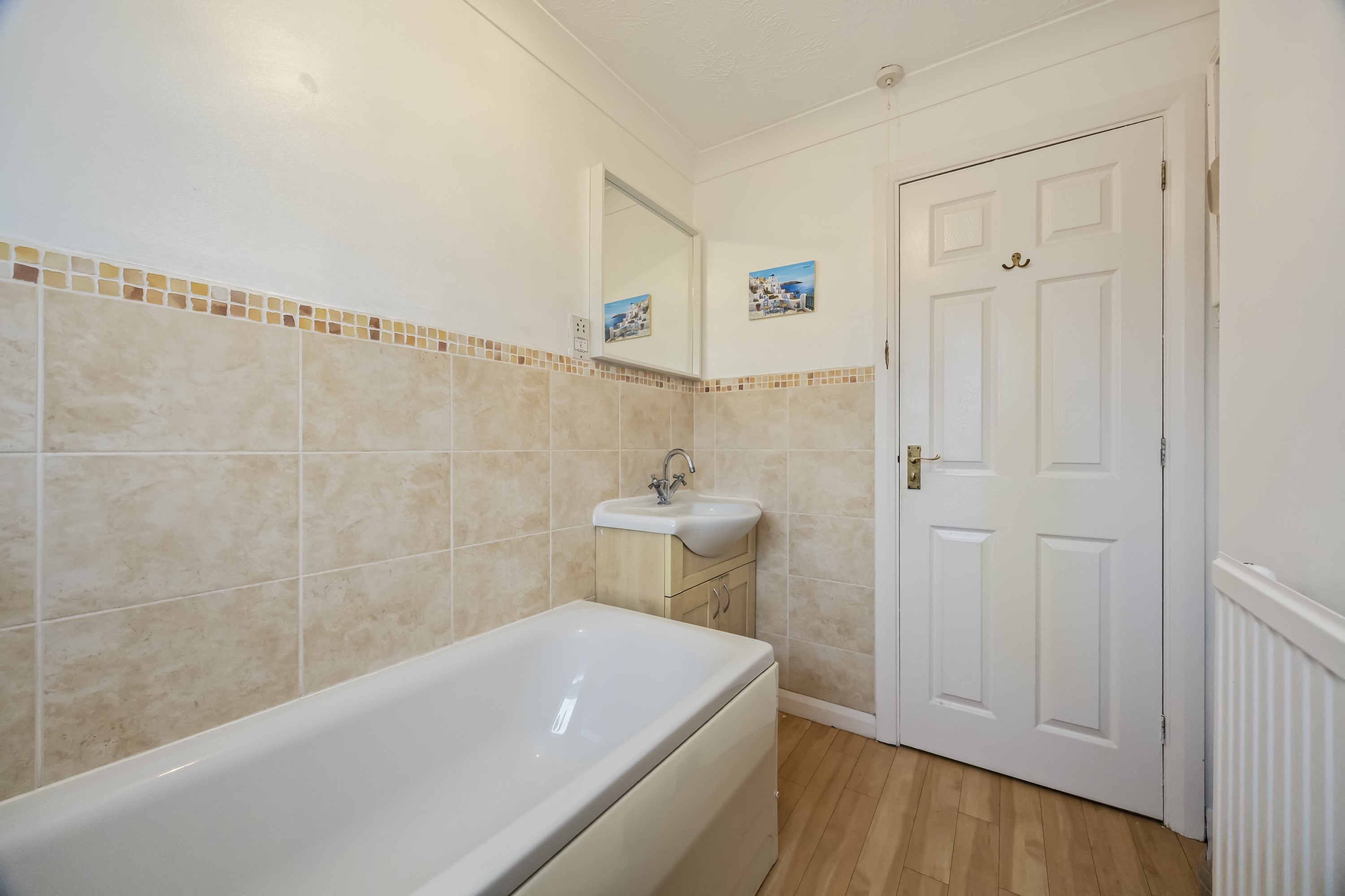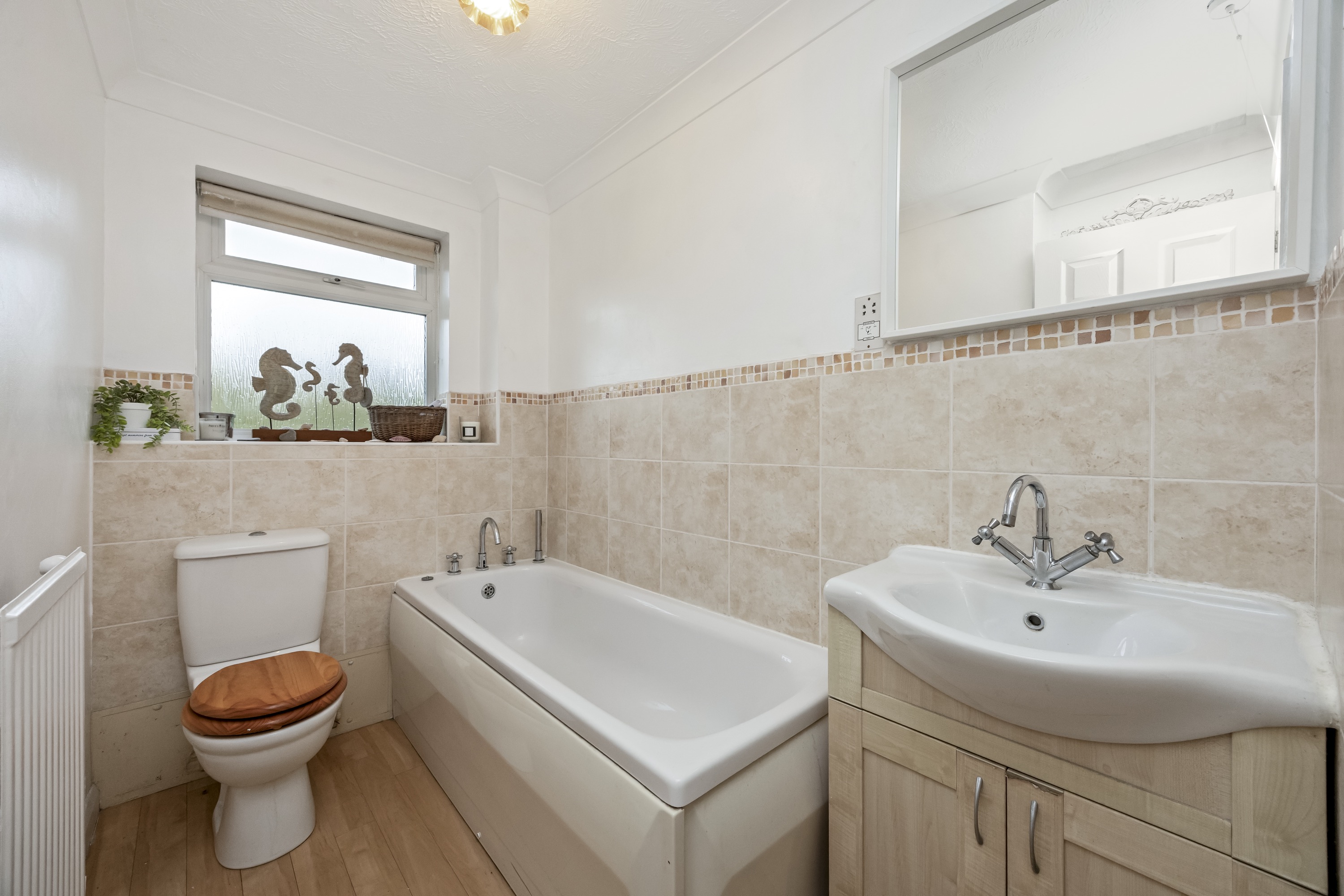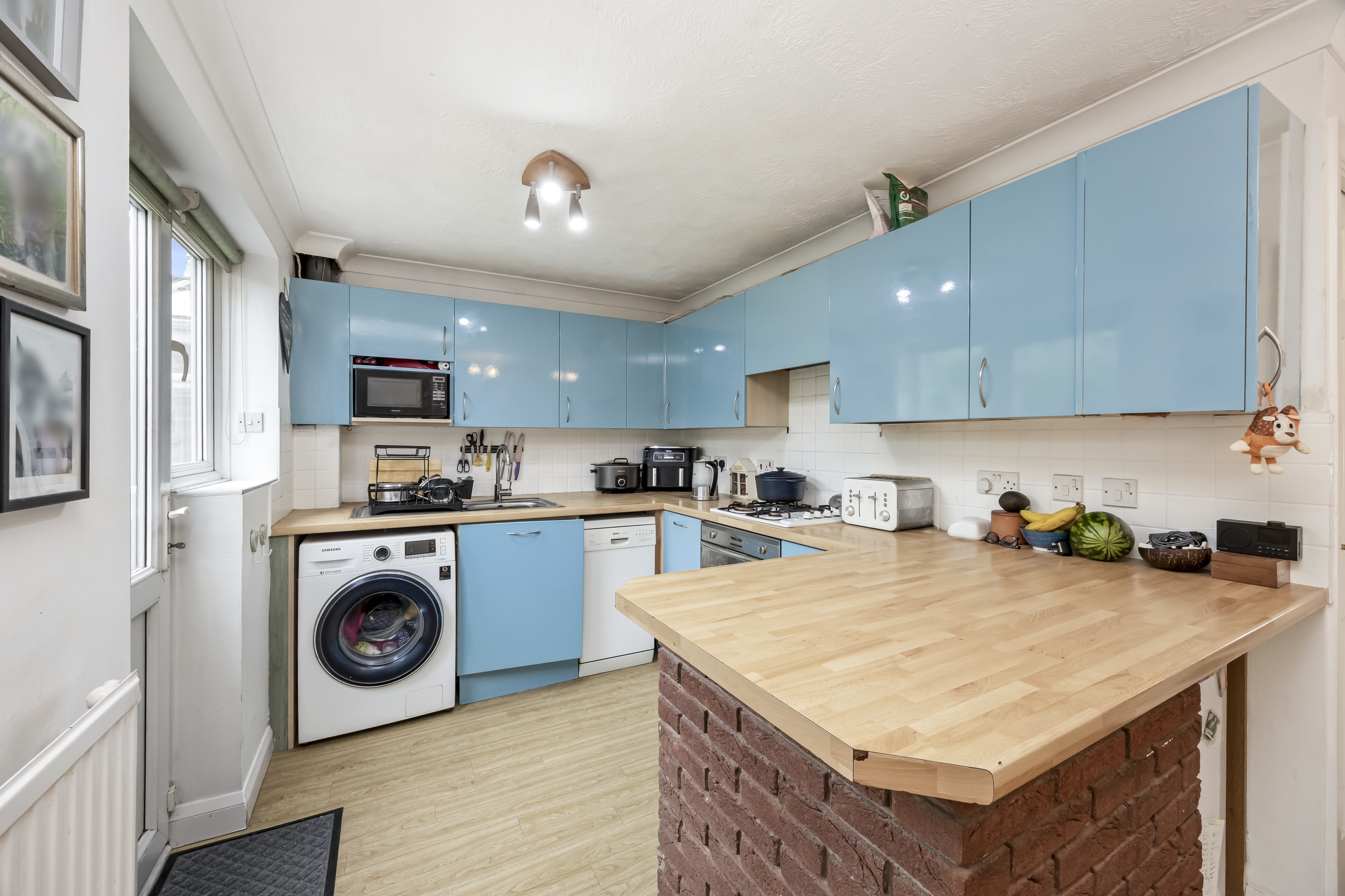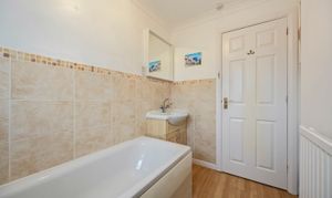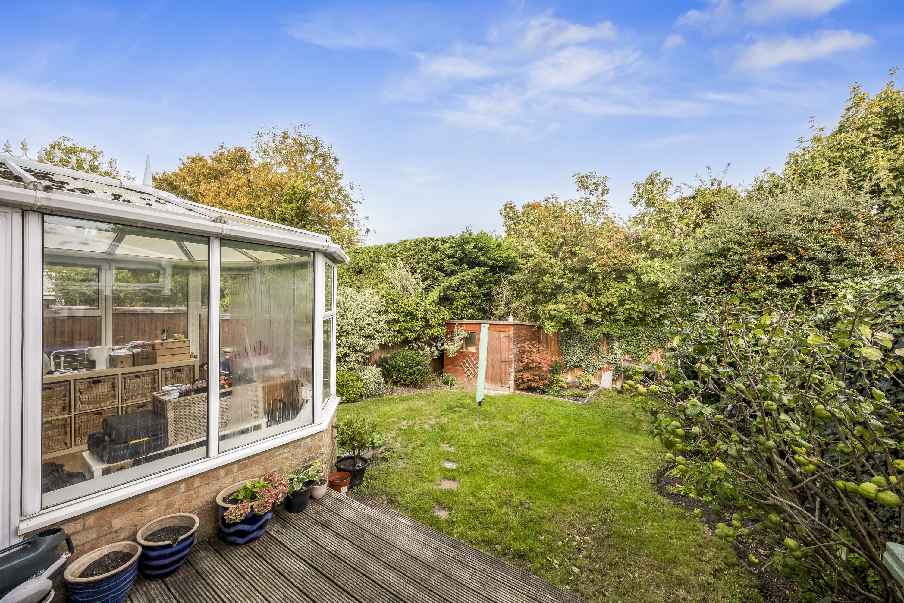 This impressive four-bedroom, three-bathroom detached house offers an exceptional blend of modern comfort and elegant design, ideal for families and discerning buyers alike. The property welcomes you with a well-maintained front garden and off-road parking, enhancing kerb appeal and every-day convenience. Step inside to discover two spacious reception rooms, including a bright living area with a bay window, modern wood-effect LTV flooring and a calming neutral palette. The open plan kitchen and dining area is a true highlight, featuring sleek blue cabinetry, integrated appliances, and a stylish breakfast bar - perfect for entertaining or family gatherings. French doors connect the living space seamlessly to the garden, while a charming conservatory provides a sunlit retreat to enjoy tranquil garden views year-round. The ground floor is completed by a double bedroom with en-suite shower room, perfect for when guests come to stay or for someone who may struggle with stairs!