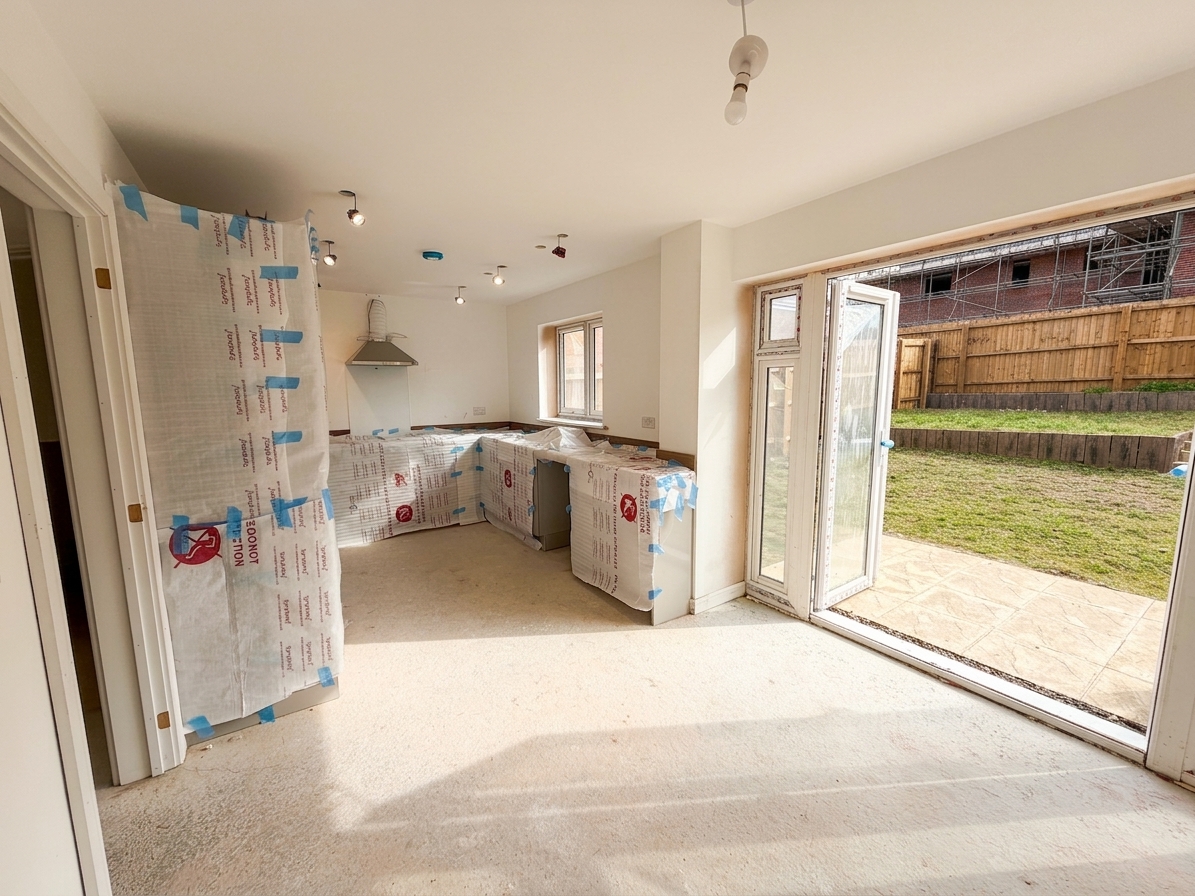 Step inside and you’re welcomed by a spacious living room, filled with natural light and offering a comfortable setting for both relaxing evenings and everyday living. To the rear, the heart of the home unfolds into an open-plan kitchen and dining area, perfect for entertaining, family meals, or simply enjoying day-to-day life. French doors lead seamlessly out to the rear garden, creating an effortless indoor-outdoor flow for summer gatherings and quiet morning coffees alike.