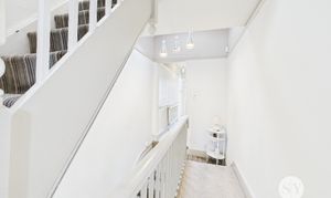 Carpet flooring, ceiling coving, stairs to first floor, under stairs storage, panel radiator.
