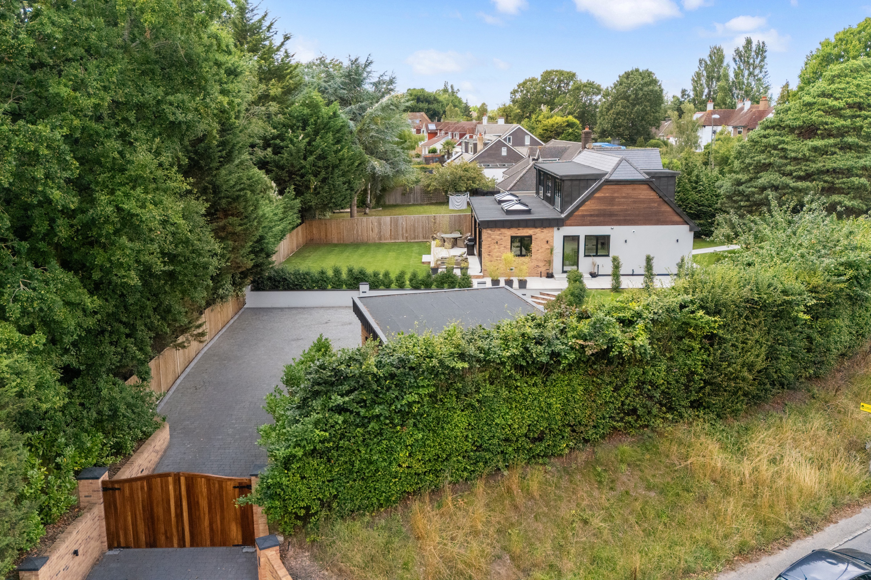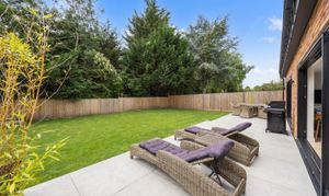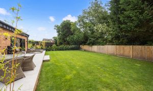 Outside the garden is on three sides with the house sitting on a large corner plot, comprising of the rear which is south facing and landscaped with a large lawned area and patio area ideal for entertaining off the kitchen dining area. The other areas of the gardens are landscaped and have additional lawned areas with an array of attractive trees and plants. The electronic gated driveway is paved and has off road parking for up to seven cars, a garden room which is currently used as a gym which has full power and lighting and is again finished to a high standard.