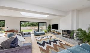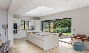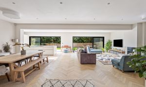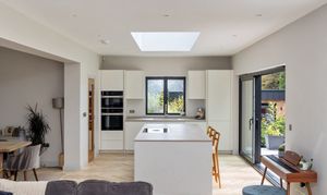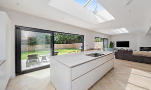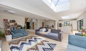 The entrance has stairs rising to the first floor and leads into the impressive extended open planned zoned living areas, including a large living space, dining area and kitchen dining area, with twin Velux roof lights which are remote control operated.