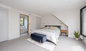 The technical specification and features include, little Greene paint throughout, under floor heating on ground floor and both bathrooms on the first floor, feature gas fireplace Barbus panorama 110, Antares solid oak wood flooring, a German hand built Leicht kitchen with integrated Miele double oven plus single oven and microwave, Quooker hot water tap, Bora induction hob, Porcelain tiles fitted outside, Hik vision security system including CCTV with remote access in stalled by Languards, fully automated Iroko hardwood gates installed supplied and fitted by Bank house electric gates, tesla electric car charging point.