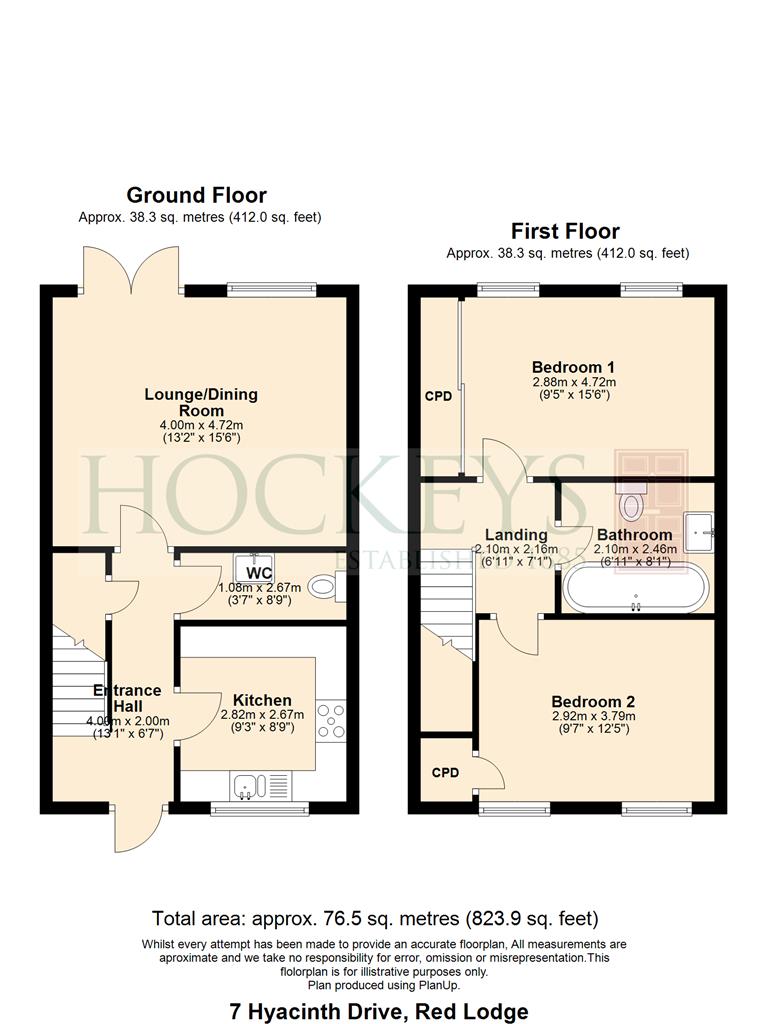 A very spacious entrance hallway with understairs storage, doors leading through into the kitchen, WC and living/dining room. Staircase raising to the first floor landing.