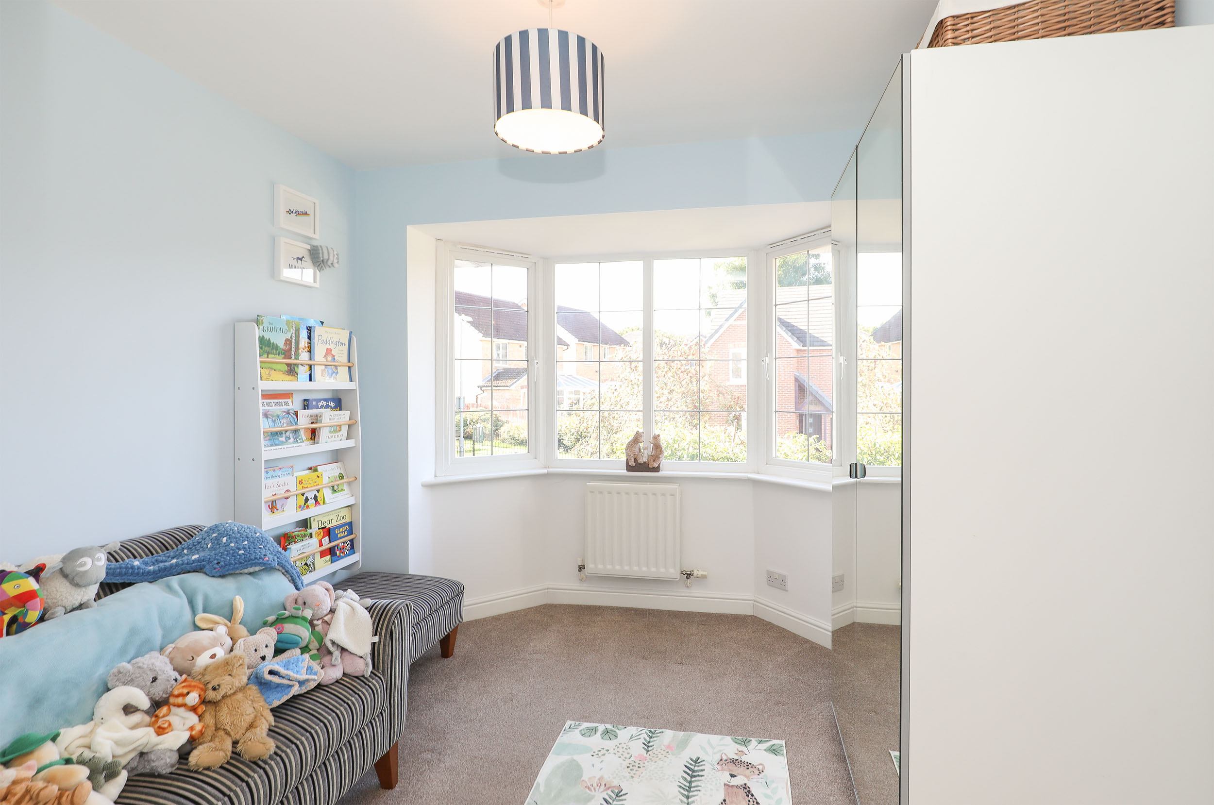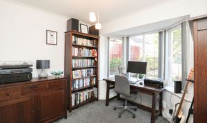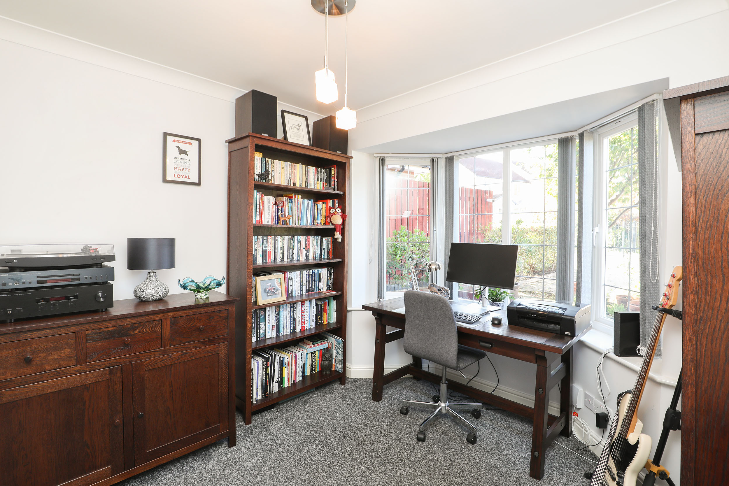 The ground floor also features a generously proportioned bay-windowed living room, offering a warm and comfortable environment for family relaxation. A dedicated home office, also benefiting from a bay window, adds valuable flexibility to the layout, making it ideal for professionals working remotely or as a playroom for families with younger children. A ground-floor W/C completes the accommodation on this level.