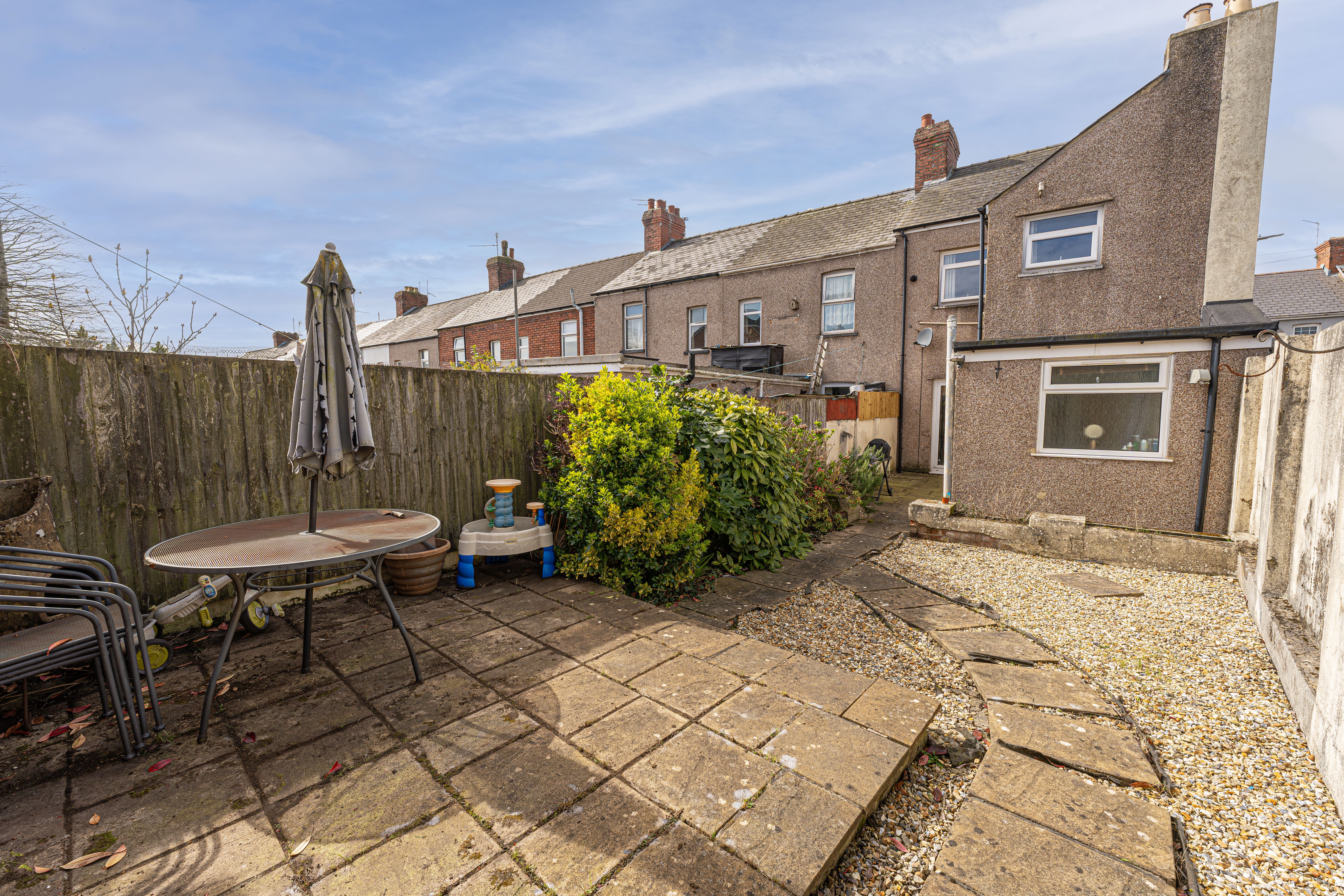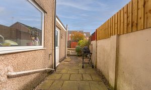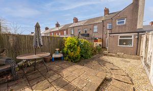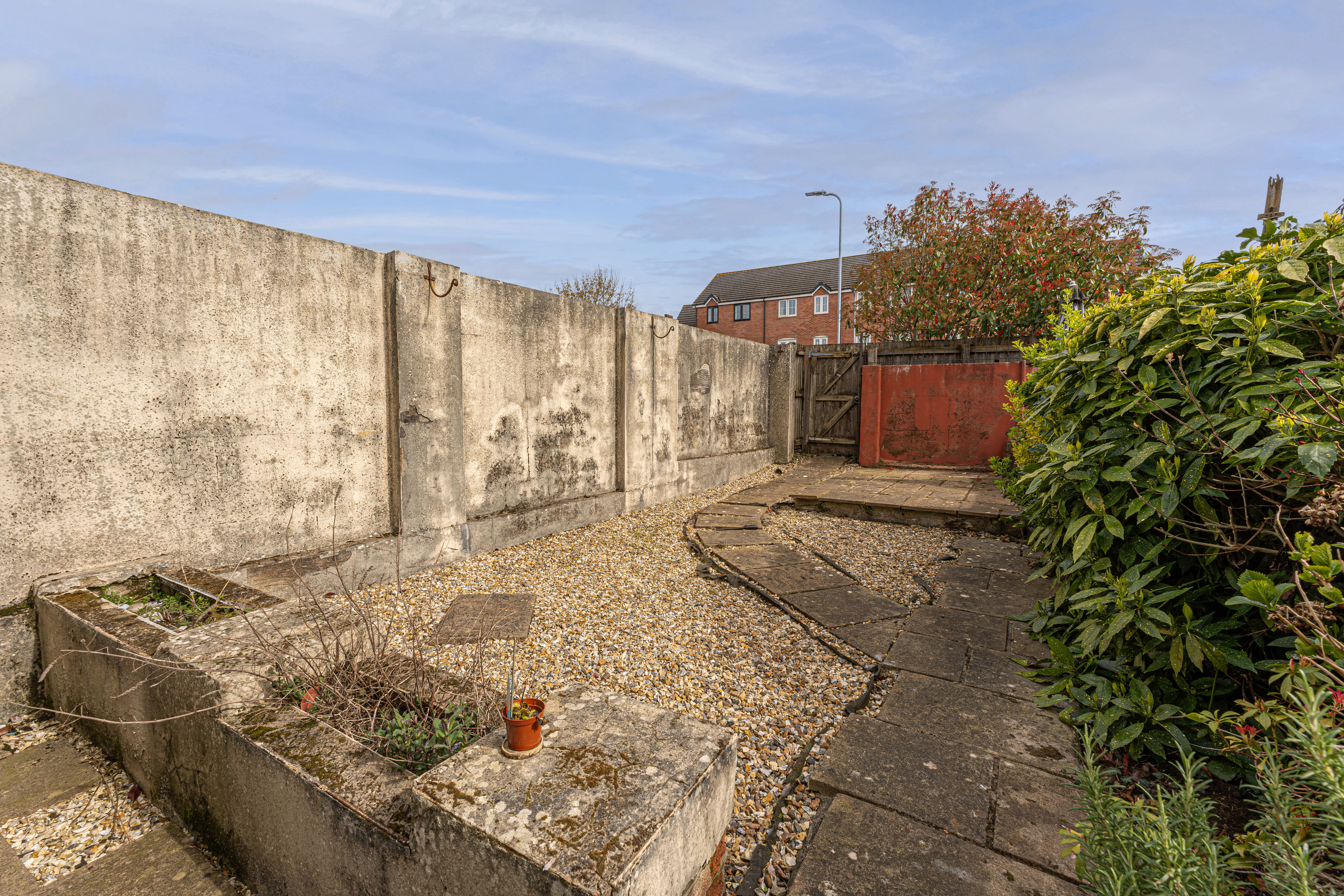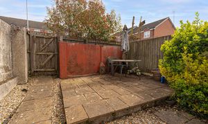 Stepping outside we have the lovely rear garden, which is fully enclosed and features multiple patio spaces blended with a pebble stone lawn and several colourful shrubs, offering a great space for sun lounging, al-fresco dining, and entertaining guests, all with a low maintenance design. From the garden we can find a gateway for alternate entry, which leads us to the properties allocated driveway, with space to park two cars off-road - unique benefit not afforded by many neighbouring homes.
