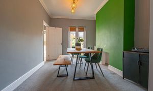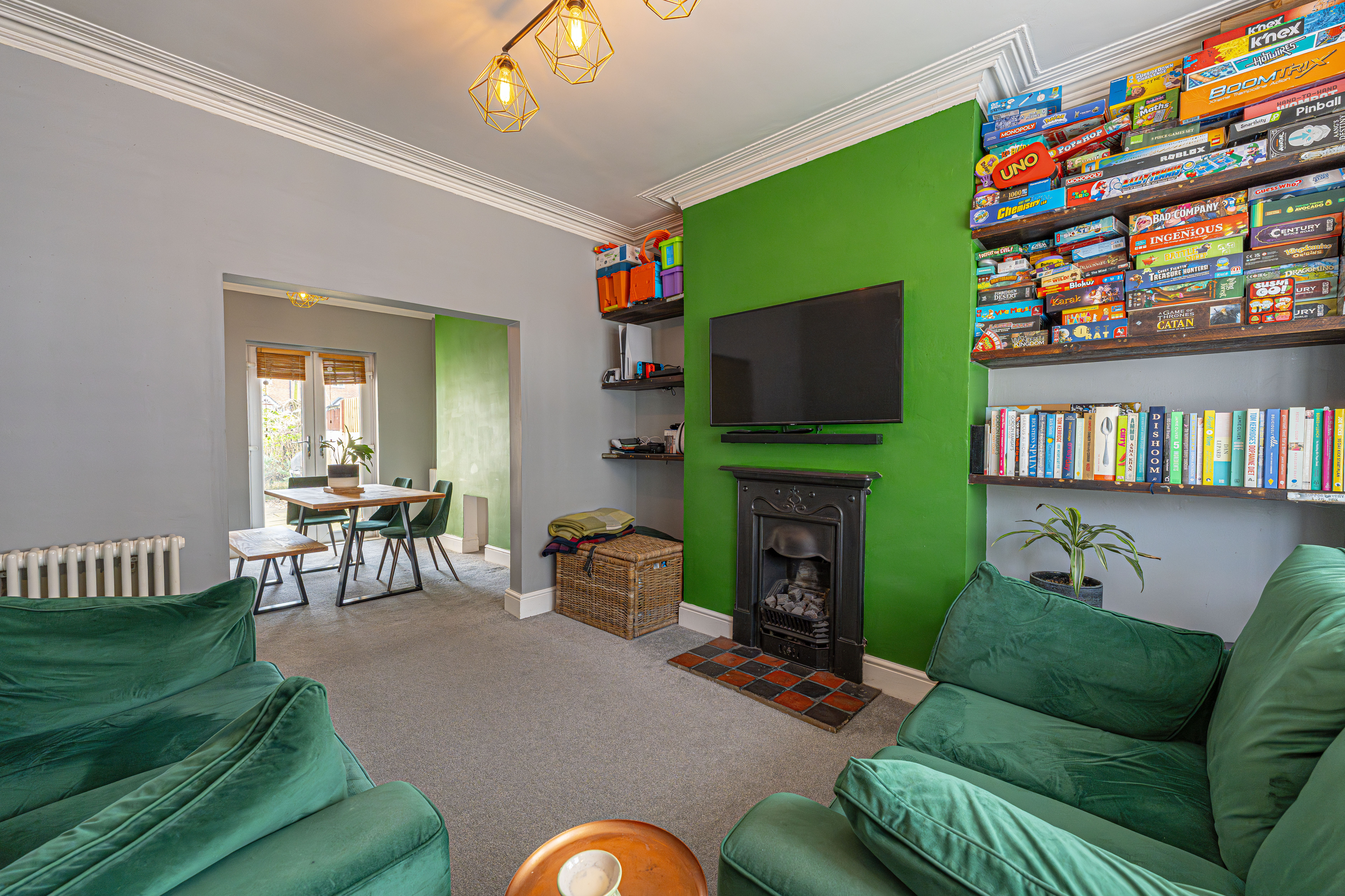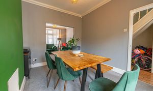 This well presented property features two spacious reception rooms at the heart of the home, with the living room and dining area combined with a fluid open plan design. Both rooms are complete with vibrant colours and plush carpets, with the front facing lounge featuring a charming fireplace and bay front windows to light up the room, creating a warm and inviting atmosphere for relaxing and entertaining. The dining room is also well lit, with French doors that open to the garden. Continuing through the house we can find the practical kitchen, with multiple storage cabinets and room for appliances. Further storage can be accessed under the staircase in the hallway, as well as a fitted cupboard beyond the kitchen, which neighbours the family bathroom with a shower over bath suite.