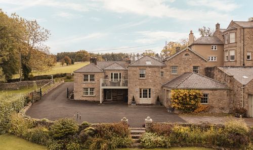 The property is approached through an impressive stone-pillared entrance, leading to a long, shared driveway and a spacious gravelled courtyard. The stately façade showcases classic Victorian architecture, with grand proportions, elegant columns, and original features.