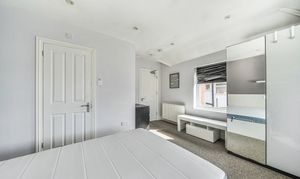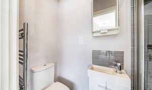 The double bedroom is generously proportioned, offering a restful retreat with plenty of natural light and stylish furnishings, while the ensuite bathroom is finished to a high standard, providing both convenience and privacy.