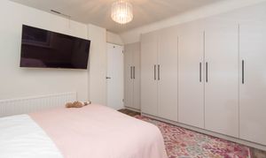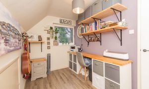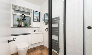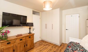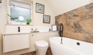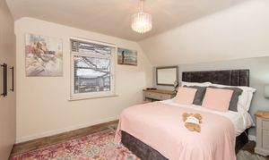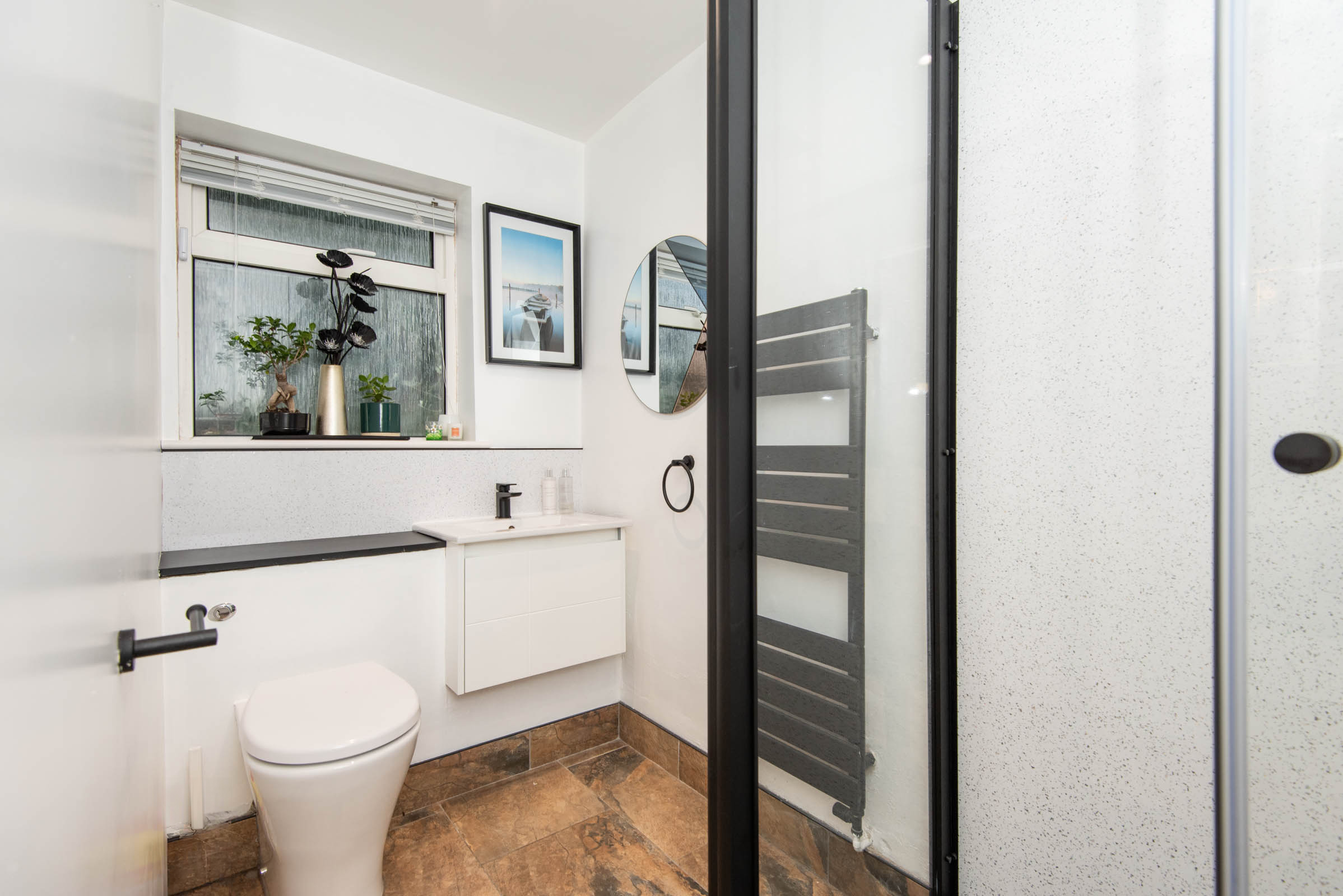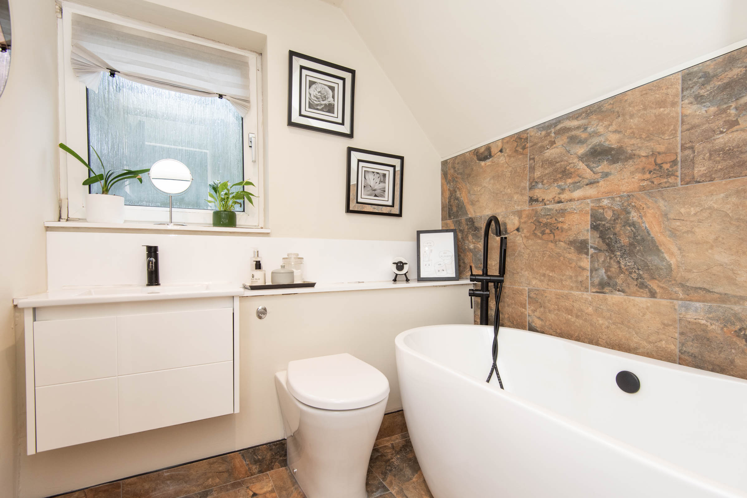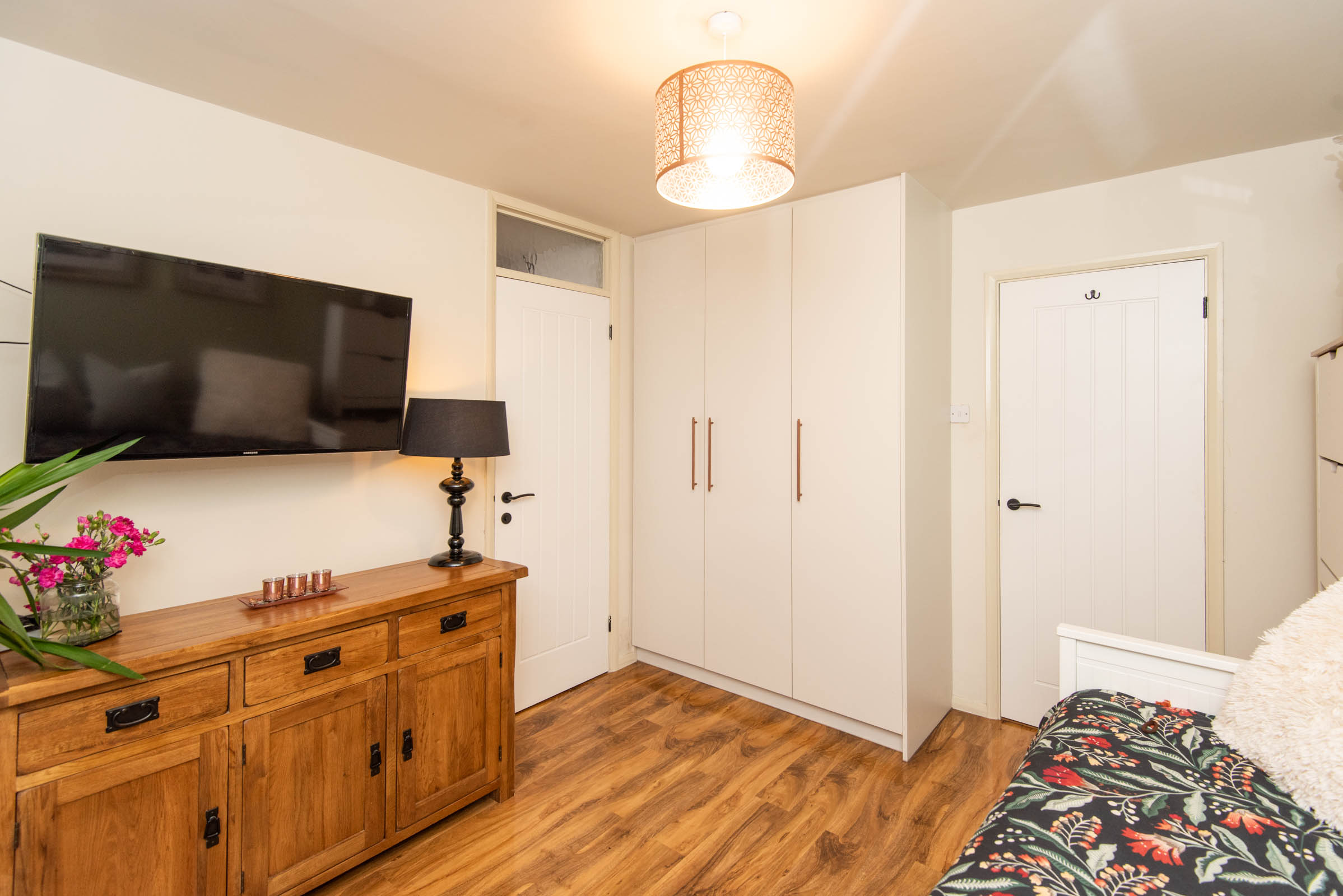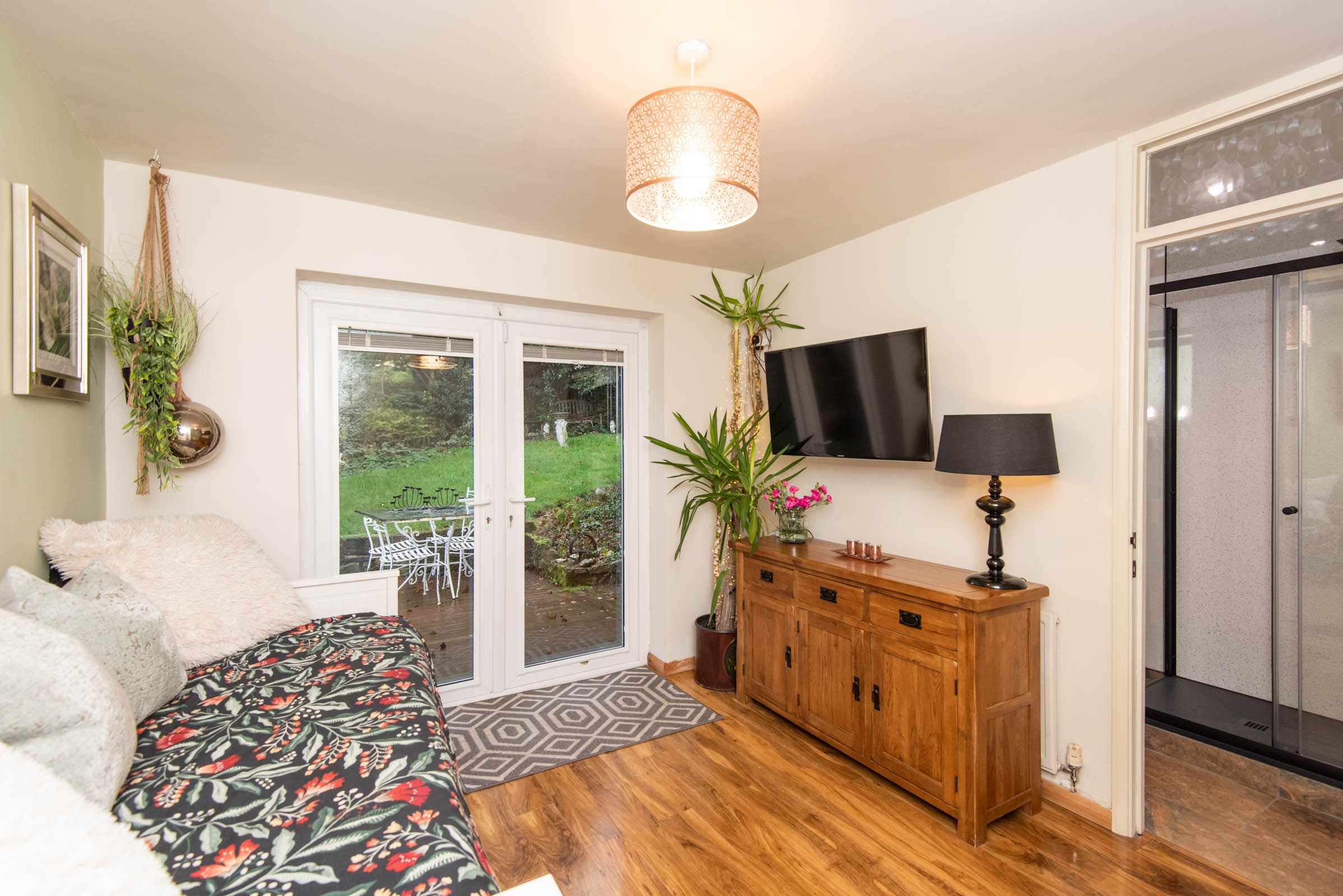 The principal bedroom is a true statement, complete with its own en-suite shower room for added privacy and convenience, as well as patio doors that provide direct access to the garden. Two additional bedrooms are well-proportioned, making them ideal for children, guests, or for use as a home office. The modern family bathroom is finished to a high standard, featuring a luxurious free standing bath. Throughout, the home benefits from tasteful decor, quality flooring, and thoughtful touches that create a welcoming and stylish atmosphere.