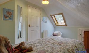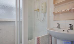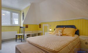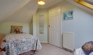 On the ground floor, you’ll also find the principal bedroom with fitted wardrobes, a good-sized study or fourth bedroom, and a family bathroom featuring a walk-in shower. Upstairs provides two further bedrooms and an additional shower room, ideal for family living or visiting guests.